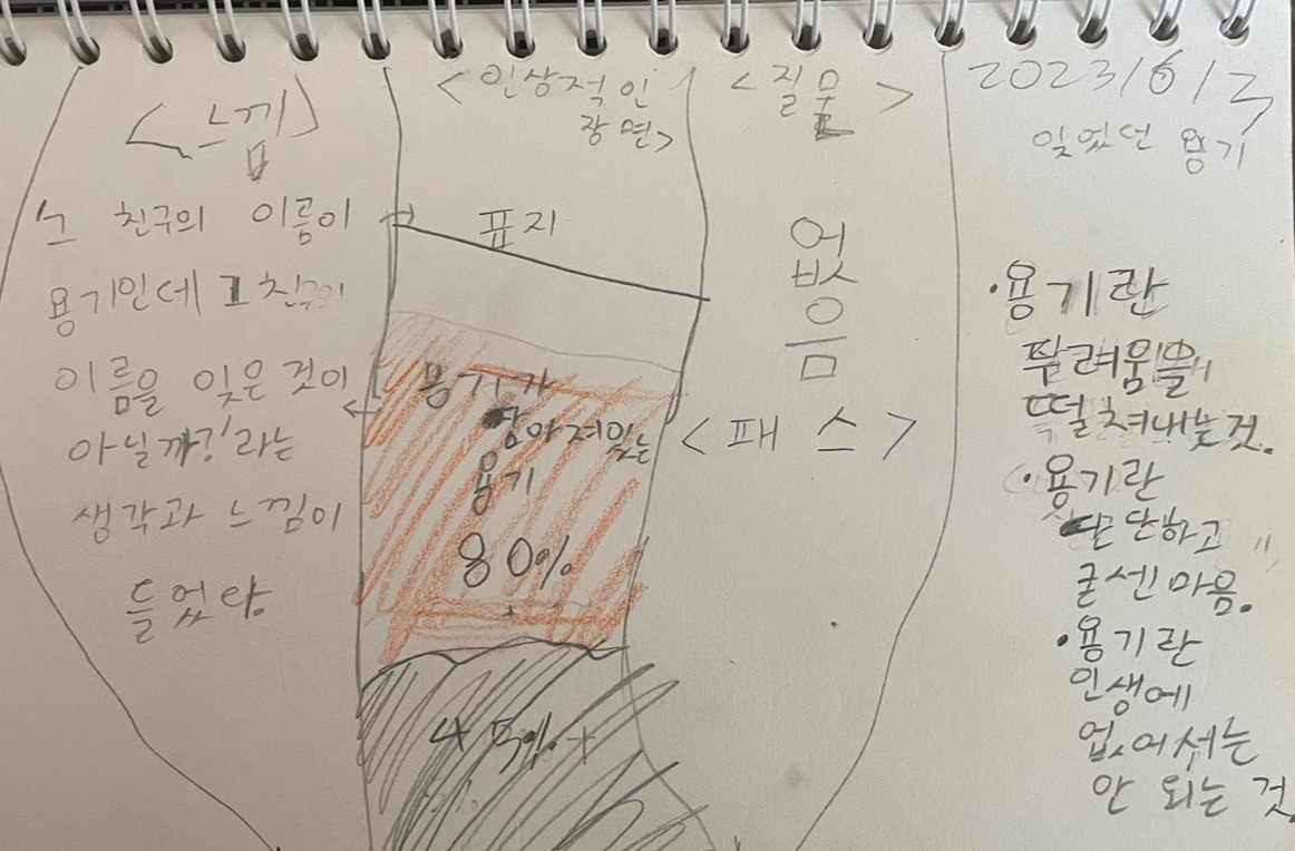 - 어떤 생각은 용기가 필요하고, 어떤 생각은 용기가 없어도 되는 것 같아.