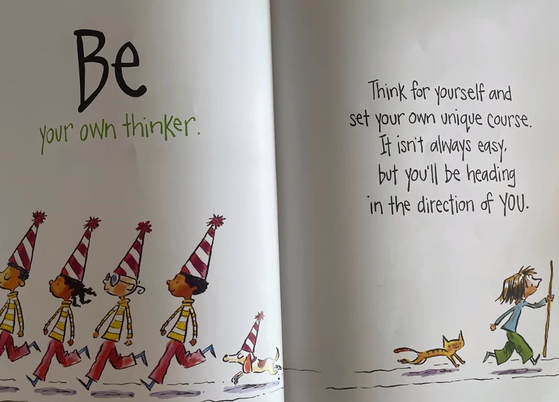 - be own your thinker : 다른 사람과 같아지려고 애쓰지 말고, 너의 길을 가라. 그래도 괜찮아. 모두가 달라, 그게 너의 길이야.