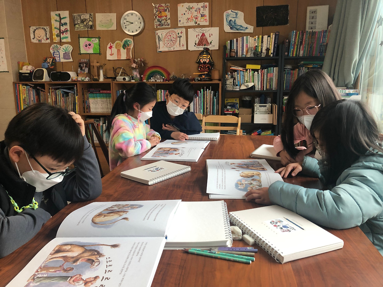 아홉살 아이들과 일주일에 한 번 만나서 그림책을 읽고 이야기를 나누고 있습니다. 책을 읽고 궁금했던 내용을 질문으로 만들고, 그 질문으로부터 생각을 넓고 깊게 해보려고 합니다. 어떤 날은 생각이 어렵다고 할 수도 있고, 어떤 날은 생각하는 것이 재미있다고 합니다. 무엇보다 함께 모여 책을 읽으니, 그 책이 다르게 보인다는 말을 많이 합니다. 오늘 읽어야할 책을 딱 꺼내면 "내가 아는 책인데, 내가 읽었던 책인데?" 하고 말하던 아어린이들은 "이걸로 이야기할 거 많을 것 같아요. 이 책을 어떻게 읽고 질문을 만들지 너무 기대되요"라고 말합니다. 함께 읽고 생각하기의 묘미를 알아차린 것 같아요!