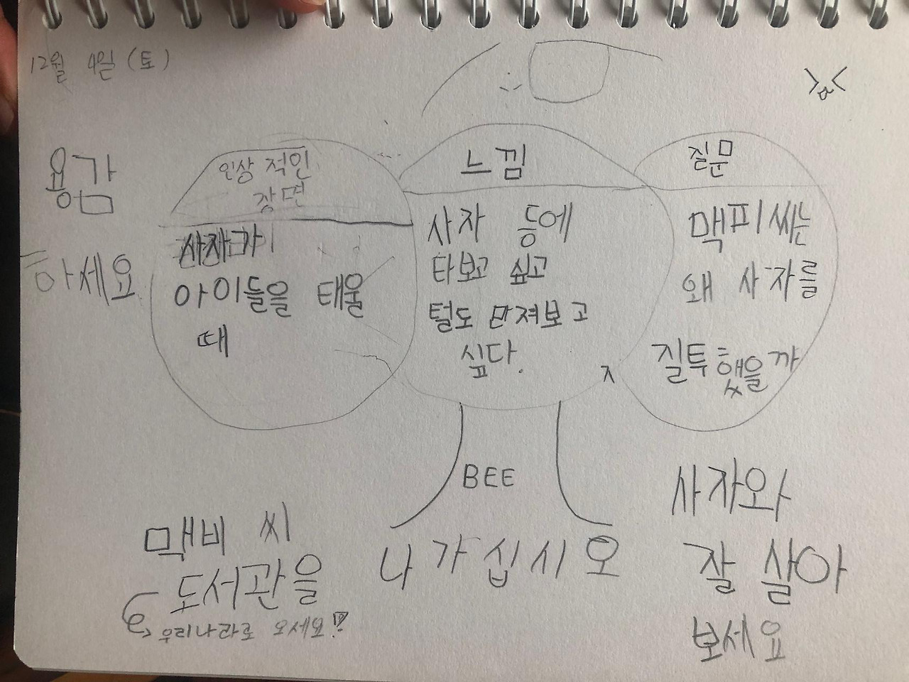 그리고 그런 경험으로부터 앞으로 내 자리를 빼앗길 때 어떻게 해야할지, 내가 빼앗았던 그 자리의 의미도 생각해보았다. 그 순간들을 떠올리며 사자 뒤에서 사자를 부러워했던 맥비씨에게 힘내라고 건내고, 사자와 관계를 맺으라고 말해주는 아이들의 이야기를 들으며 이 시간이 헛되지 않다는 걸 깨달았다.