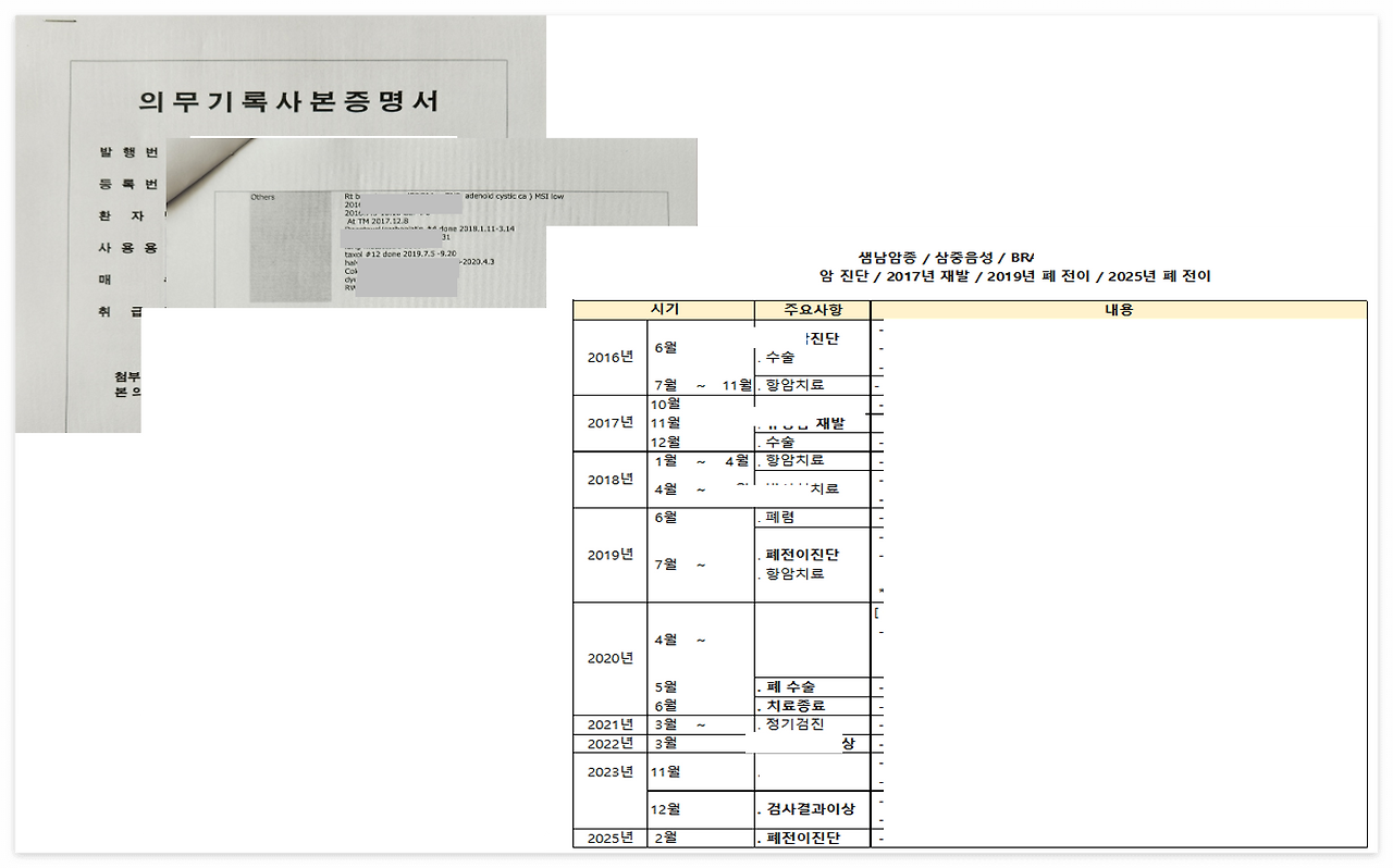 먼저, 진단결과(의무기록사본)를 확인하고 나의 치료이력을 업데이트합니다.