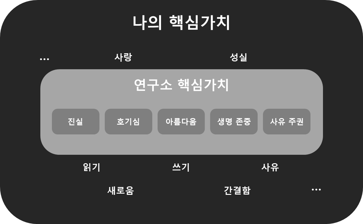 AMO(AI Management Officer) 조직이 연구소 결과물의 가치를 검증한다. 연구소 5대 가치(진실, 호기심, 아름다움, 생명 존중, 사유 주권) 검증 절차를 통과해야 최종 산출물로 등록된다. 지금, 나 스스로를 점검하는 중이다. 물론, 연구소 5대 가치는 나의 핵심가치에 대한 충분조건일 뿐이다. 동일하지 않다.