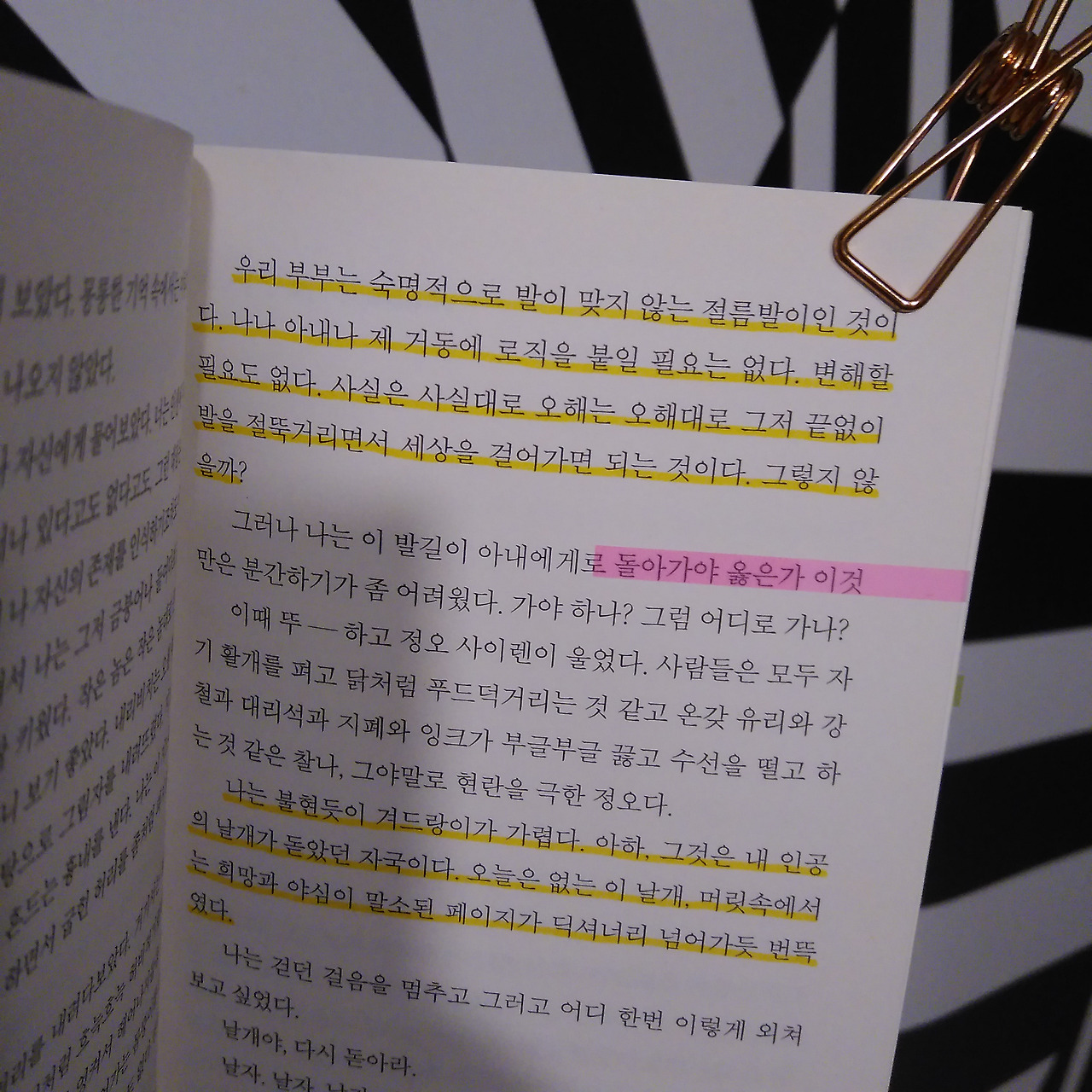 나는 불현듯이 겨드랑이가 가렵다. 아하, 그것은 내 인공의 날개가 돋았던 자국이다. 오늘은 없는 이 날개, 머릿속에서는 희망과 야심이 말소된 페이지가 딕셔너리 넘어가듯 번뜩였다.