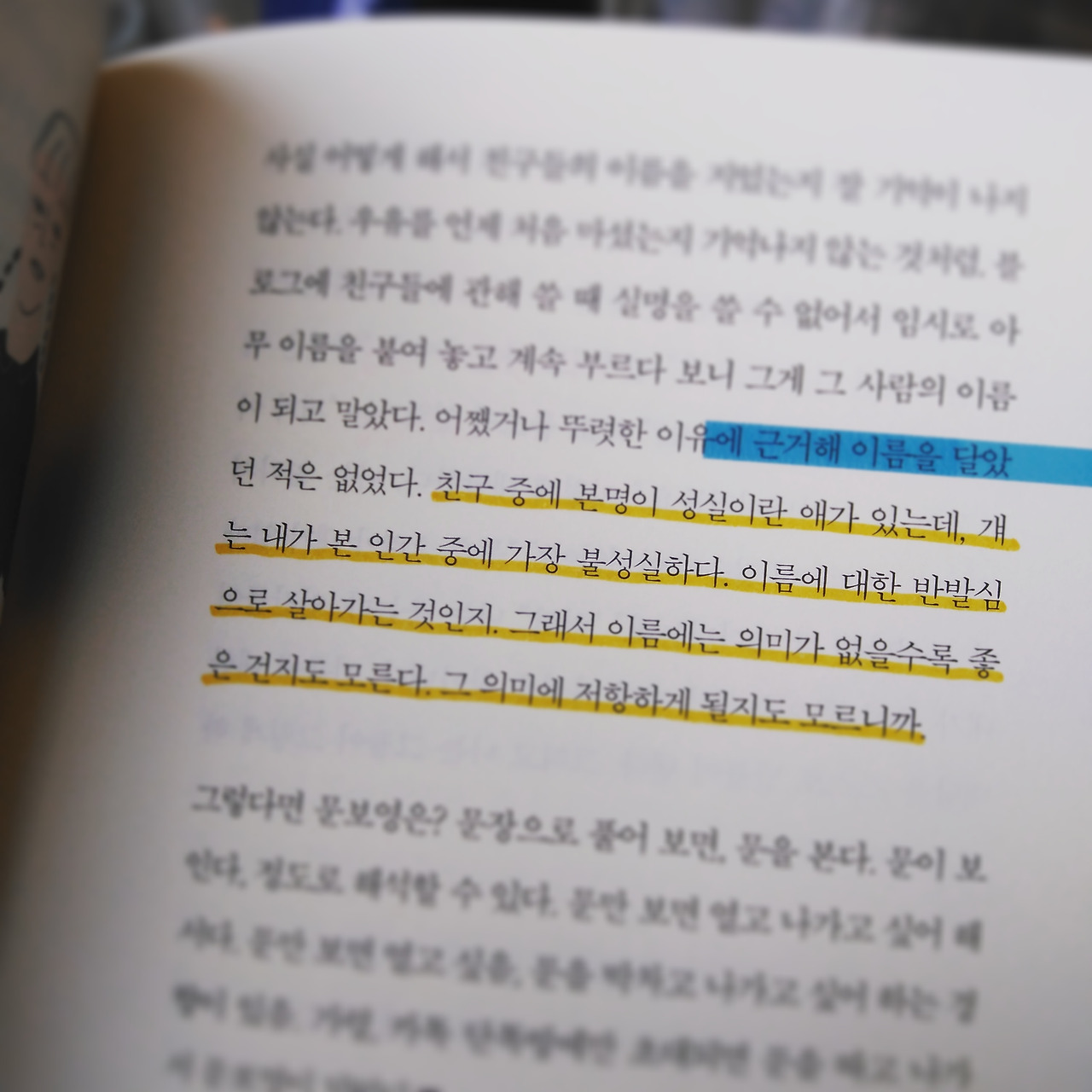 소중한 기억이 있는 것만큼 중요한 것은 그것을 계속 끌고 가는 것일 텐데 이 소중한 기억은 휘발성이 남달라서 자꾸 사라지려 든다. 불행은 접착성이 강해서 가만히 두어도 삶에 딱 달라붙어 있는데, 소중한 기억은 금방 닳기 때문에 관리를 해줘야 한다. 그래서 사람들은 액자를 세워 두는 것으로 추억을 상기하려고 한다. 그런데 액자만큼 눈에 안 보이는 것도 없다. 그래서 추억은 가지고 돌아다니는 것이 좋다. 체감할 수 있도록 등에 메고 다니거나, 가방에서 책을 꺼낼 때 이따금 눈이 마주치도록 하거나, 손이 긁힐 수 있게 새로 출력해서 종이의 사면을 날카롭게 한다거나. 좋은 기억에 관한 트리거를 덫이나 지뢰처럼 심어 두는 것이다.
