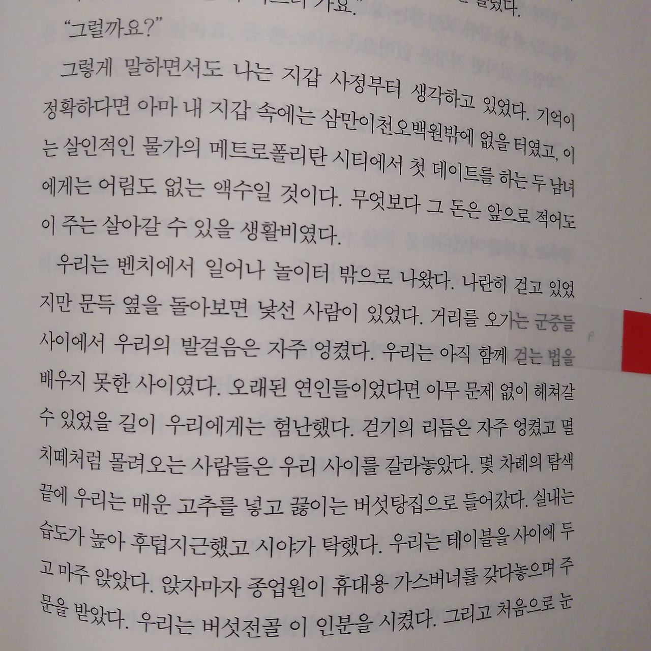 "나가자." 내가 먼저 자리에서 일어나 지갑을 꺼냈다. "내가 낼게."