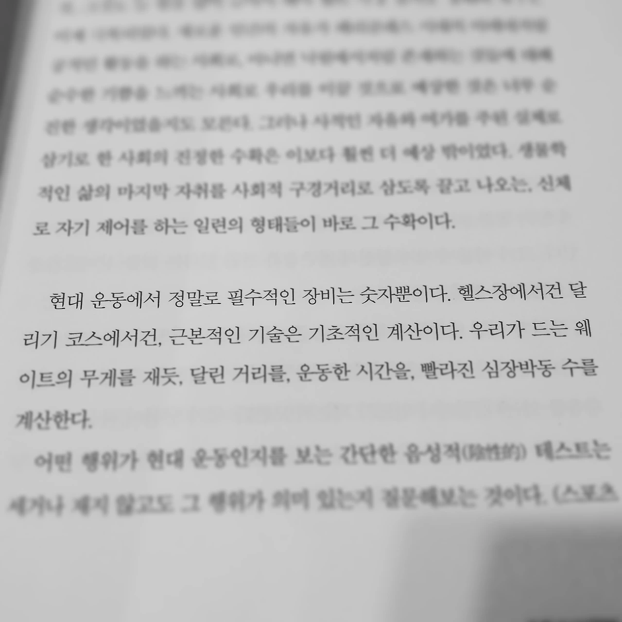 운동을 하면, 과학자도 아니면서 세상을 수학으로 인식한다. 엄밀하게 표현하면, 스스로를 수치화한다. 옷의 사이즈, 키와 몸무게, 근육량, 체지방으로 시작한다. 맛있게 먹으면 0칼로리라더니, 구구단 외우듯이 하나하나 따지기 시작한다. 그 반갑던 치킨이 이제 그냥 245.9kcal/100g의 유혹으로 전락한다. 나이가 드니 조금 더 복잡해진다. 혈압, 심전도, 콜레스트롤, 백혈구 등으로 내 몸은 조각조각난다. 심지어 정신적인 고뇌도 스트레스 지수란 이름으로 가시화한다.