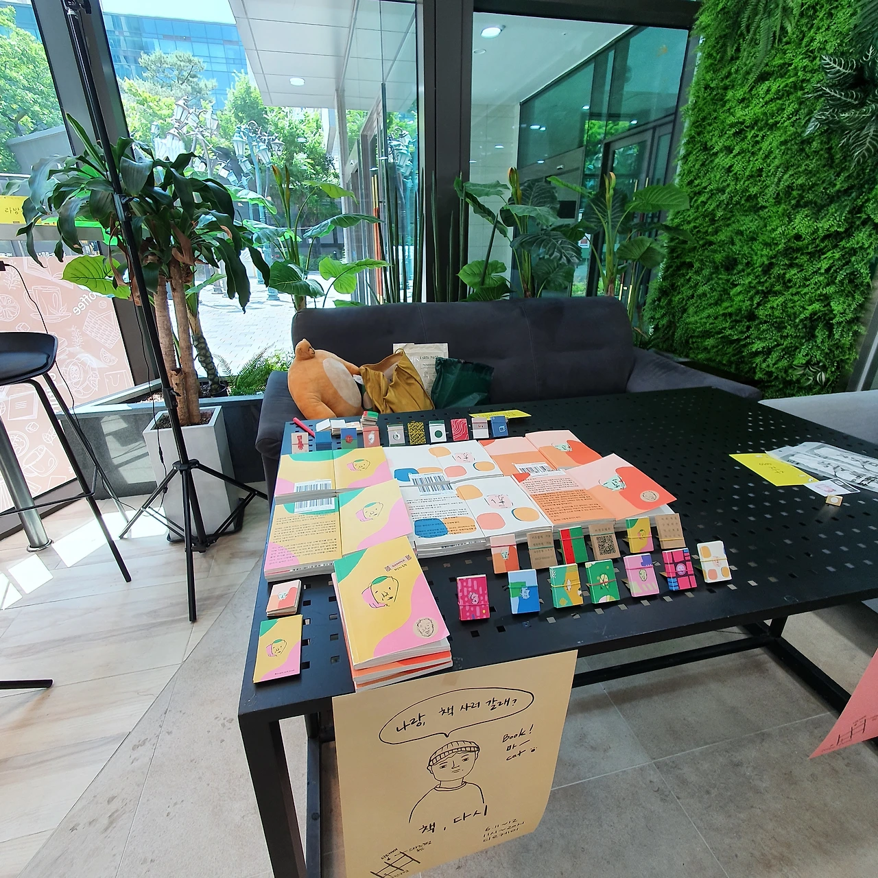 항상 고민하는 거지만, 얼마나 책을 적게 가져와야 완판이 되는 걸까. 가져온 책을 다시 가져가면서 완판한 작가님들을 질투했다. 몇시간 책을 팔지 못하고 놀기만 하다가 (혹시 놀기만 해서 책을 못판건 아닐까.) 자리에 앉았고, 착한 분들이 나타나서 뒤늦게 하나둘 책을 팔수 있었다.