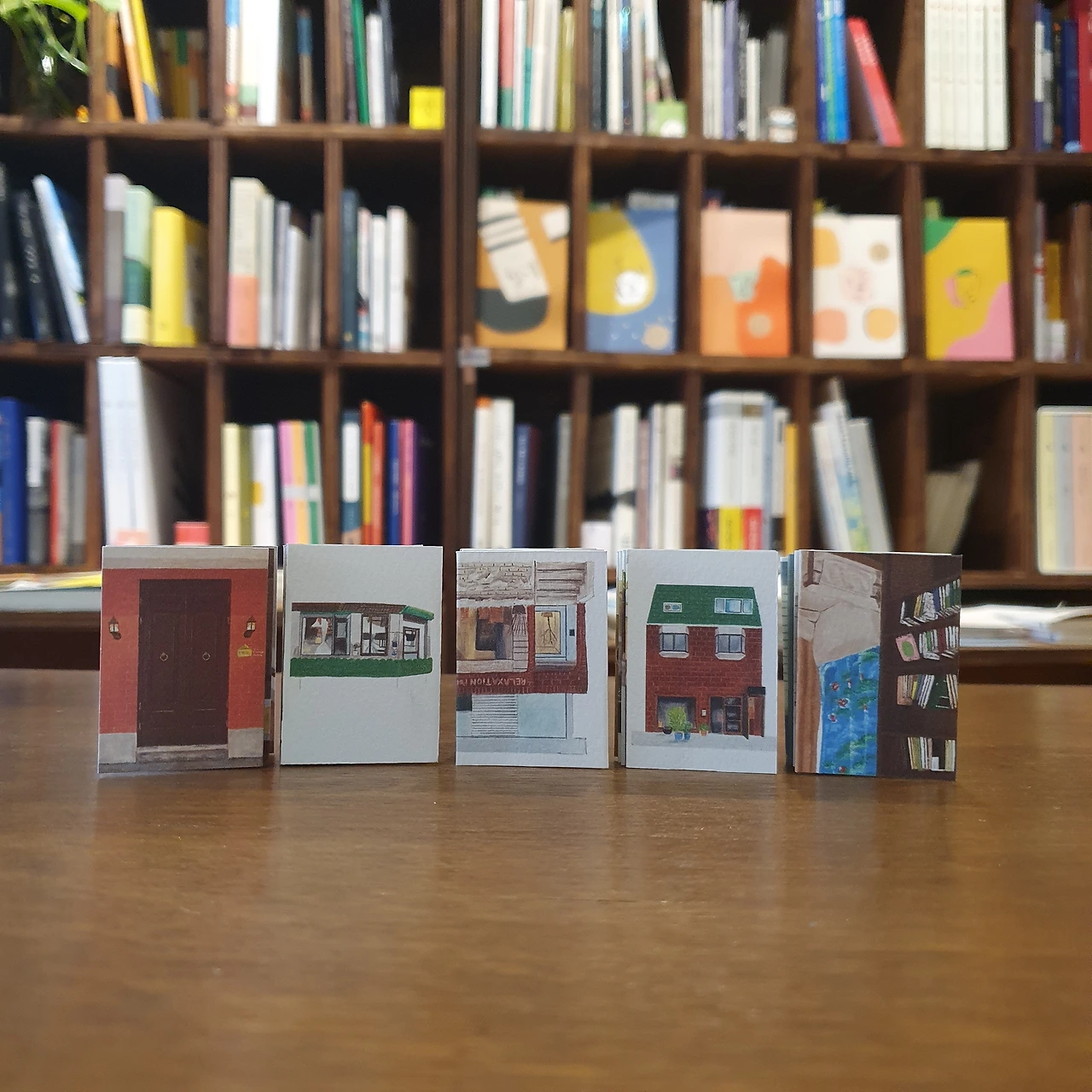 in 회전문서재 | 20팀이 모여서 50종의 미니북을 전시하고 있다. 주제도 판형도 크기도 다 다르지만, 아주 작다는 것만 공통점이다. 미니북의 특성상 와서 직접 보기를 추천한다. 안 사기 어렵다.