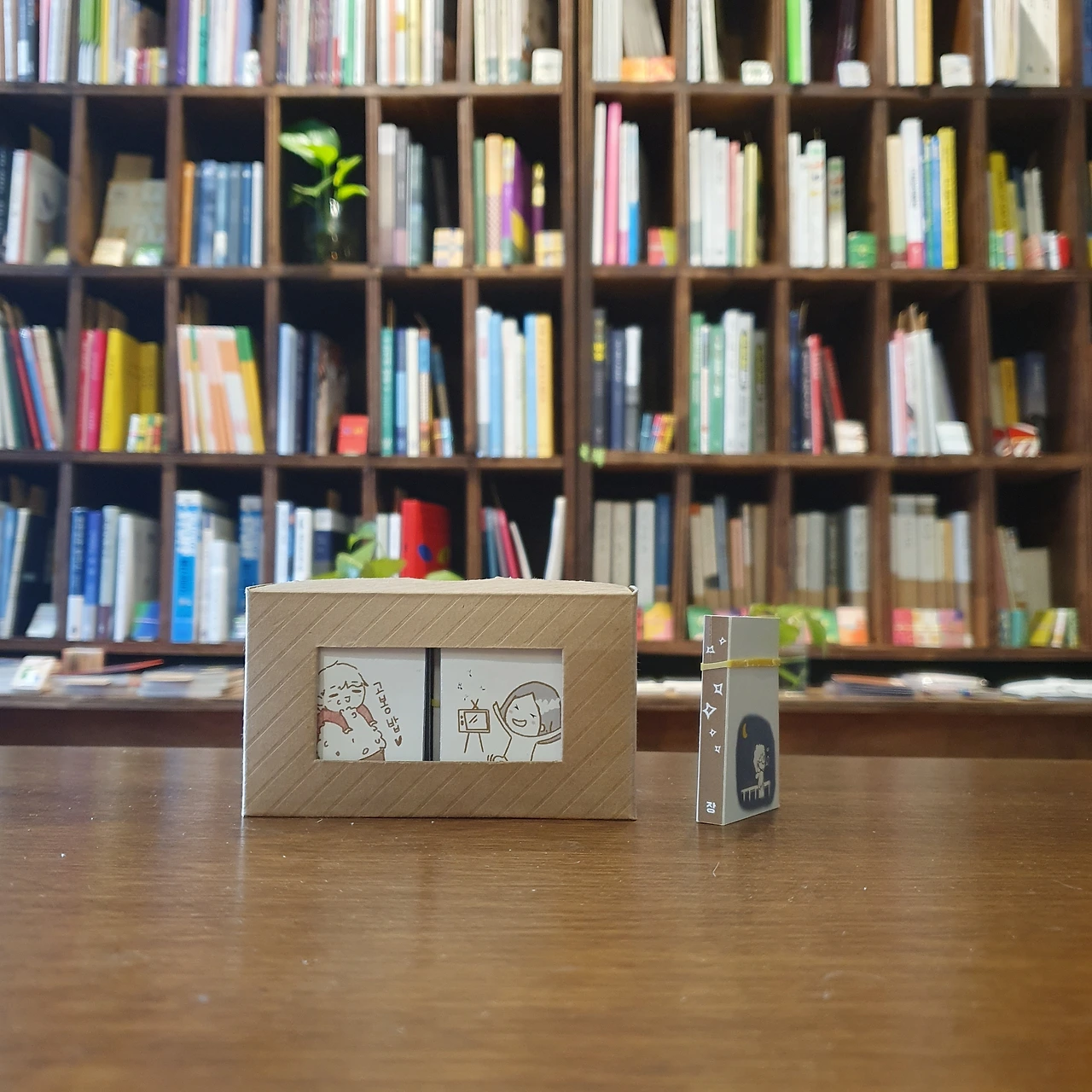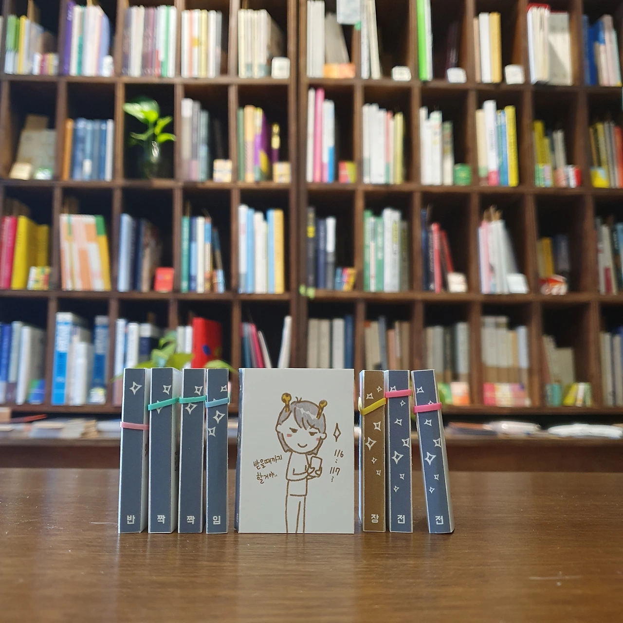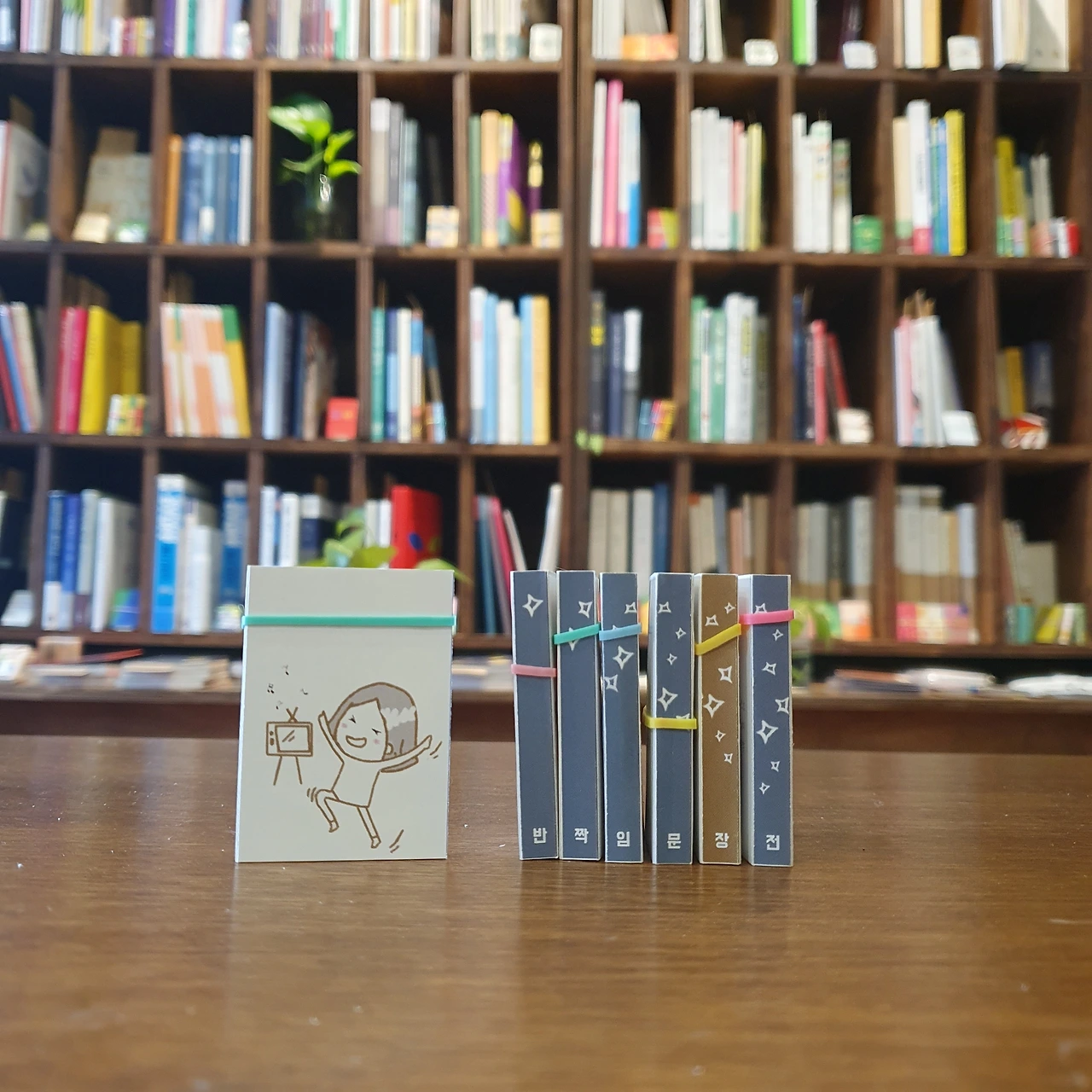 그동안 해왔던 것처럼 입고도서의 미니북을 만들고 독서모임 때 미니북을 만들었다. 그리고 이번엔 조금 더 확장했다. 내가 만들지 않은 미니북도 들여오기 시작했다. 북페어를 나갈 때마다 미니북을 하나둘씩 더 보게 된다. 계속 늘어나는 상황을 기다리기만 하는 게 아니라, 이끌어보자는 욕심이 꿈틀대기 시작한 거다. 그 결과는, 뭐 알다시피, 2024년에는 미니북전을 개최하기에 이르렀다. 암튼 이건 2023년의 기록이다.