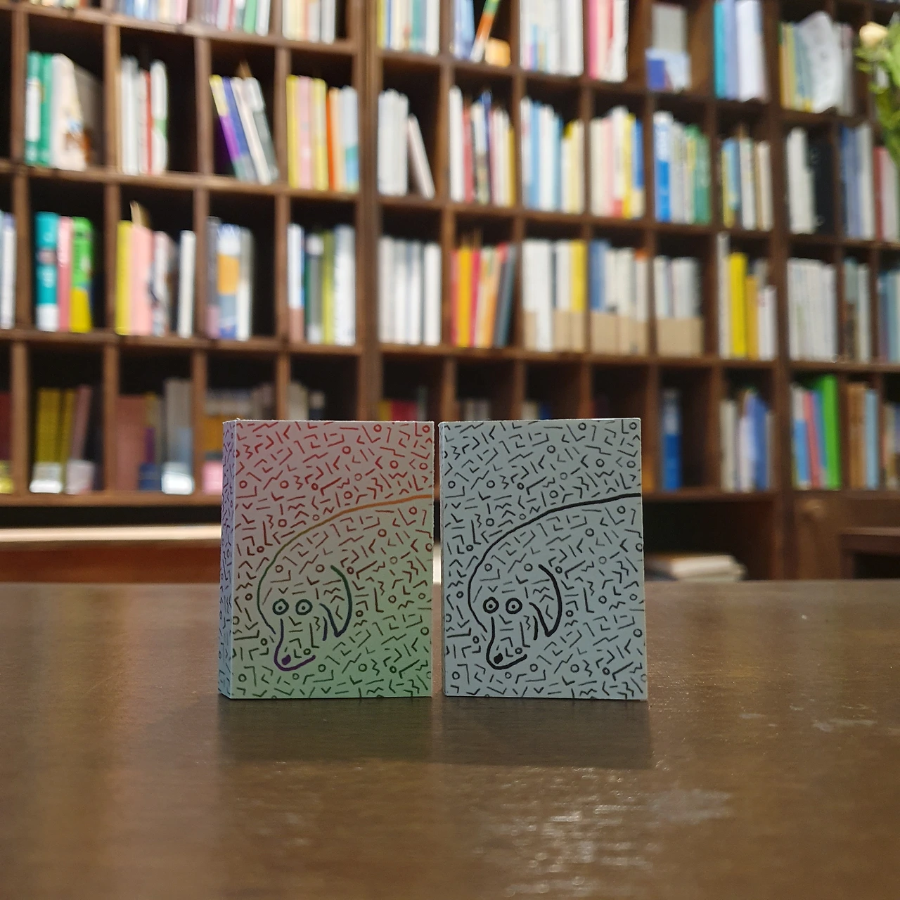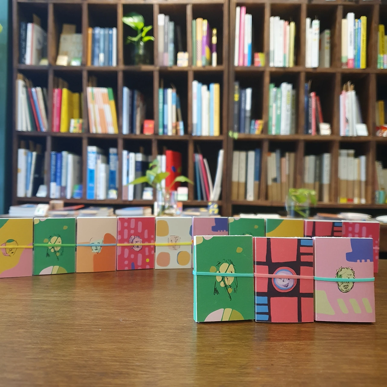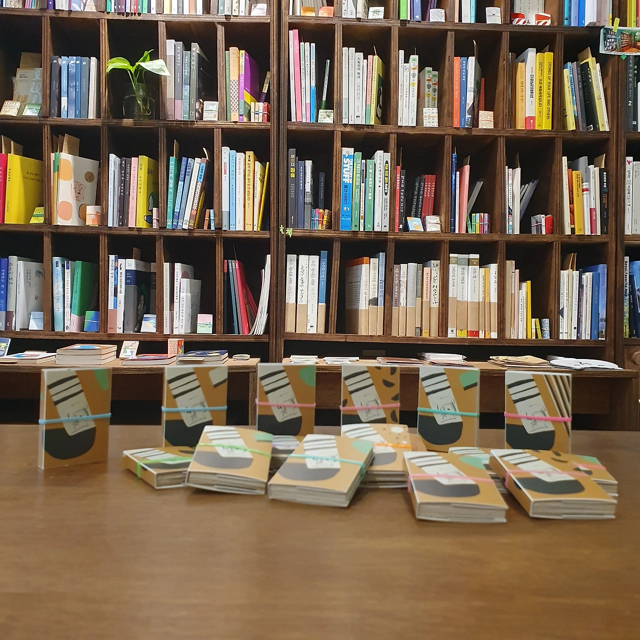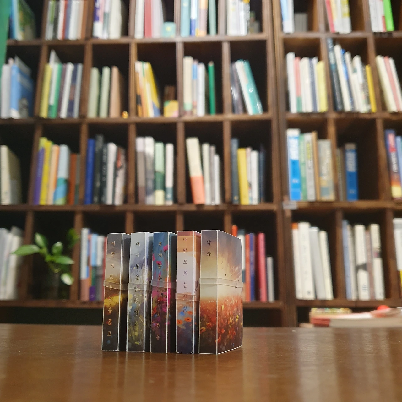 그동안 해왔던 것처럼 입고도서의 미니북을 만들고 독서모임 때 미니북을 만들었다. 그리고 이번엔 조금 더 확장했다. 내가 만들지 않은 미니북도 들여오기 시작했다. 북페어를 나갈 때마다 미니북을 하나둘씩 더 보게 된다. 계속 늘어나는 상황을 기다리기만 하는 게 아니라, 이끌어보자는 욕심이 꿈틀대기 시작한 거다. 그 결과는, 뭐 알다시피, 2024년에는 미니북전을 개최하기에 이르렀다. 암튼 이건 2023년의 기록이다.