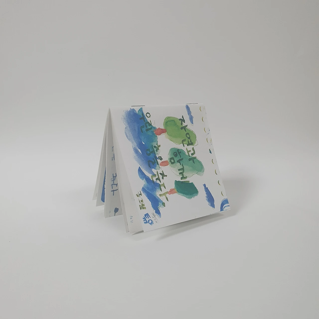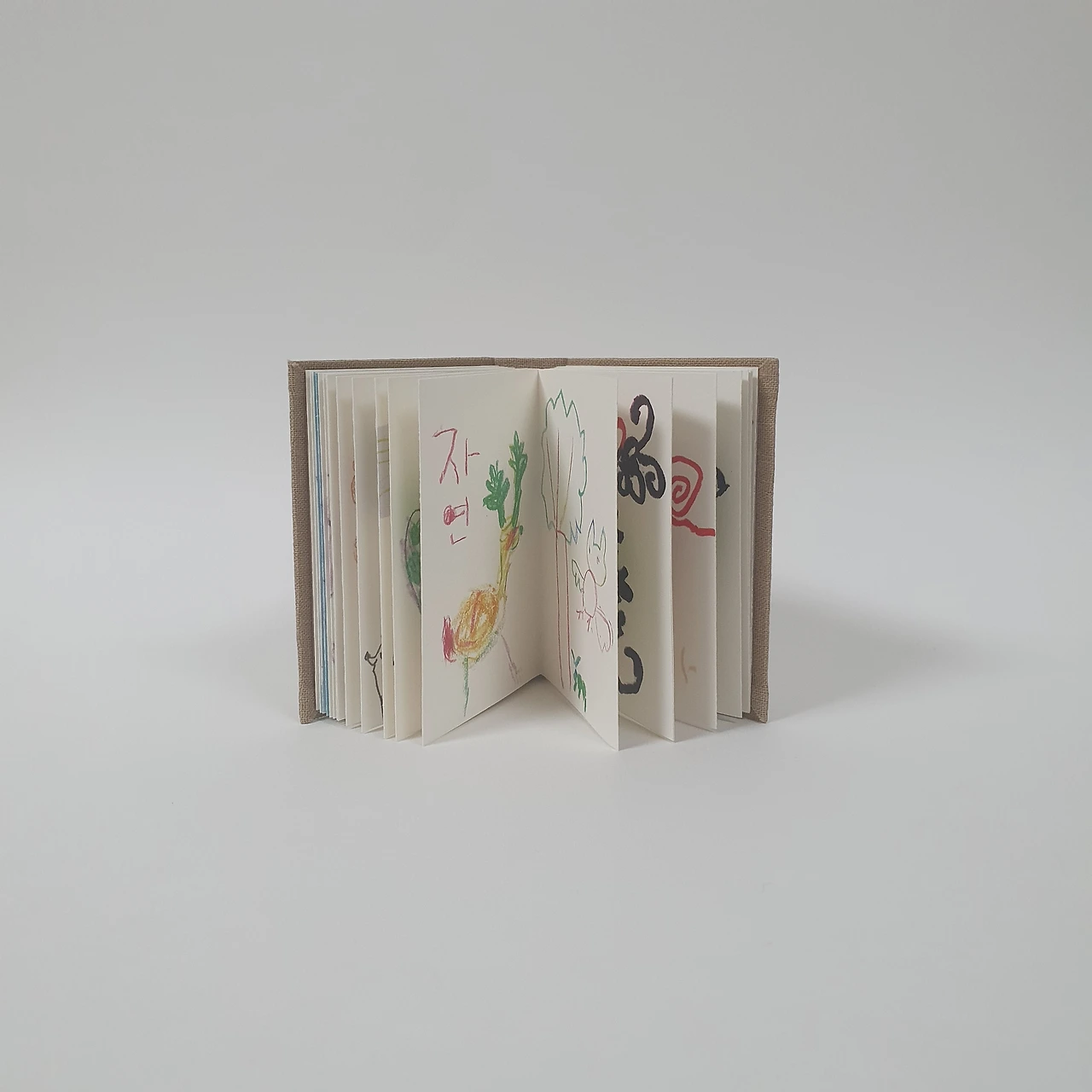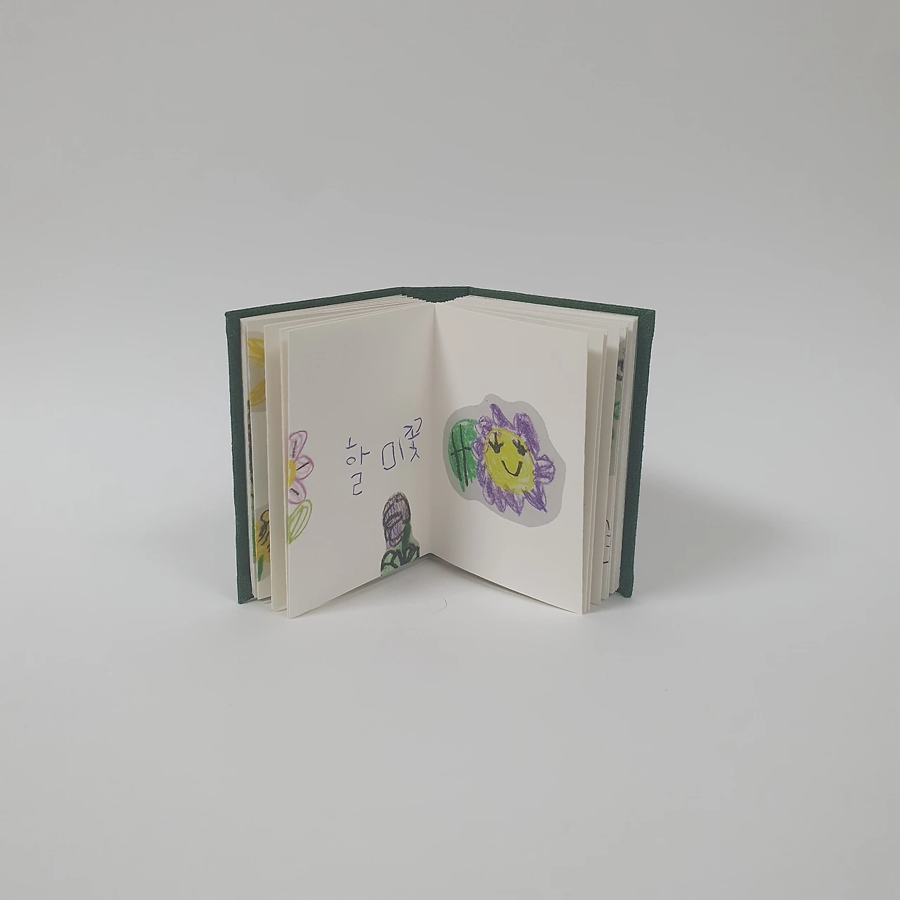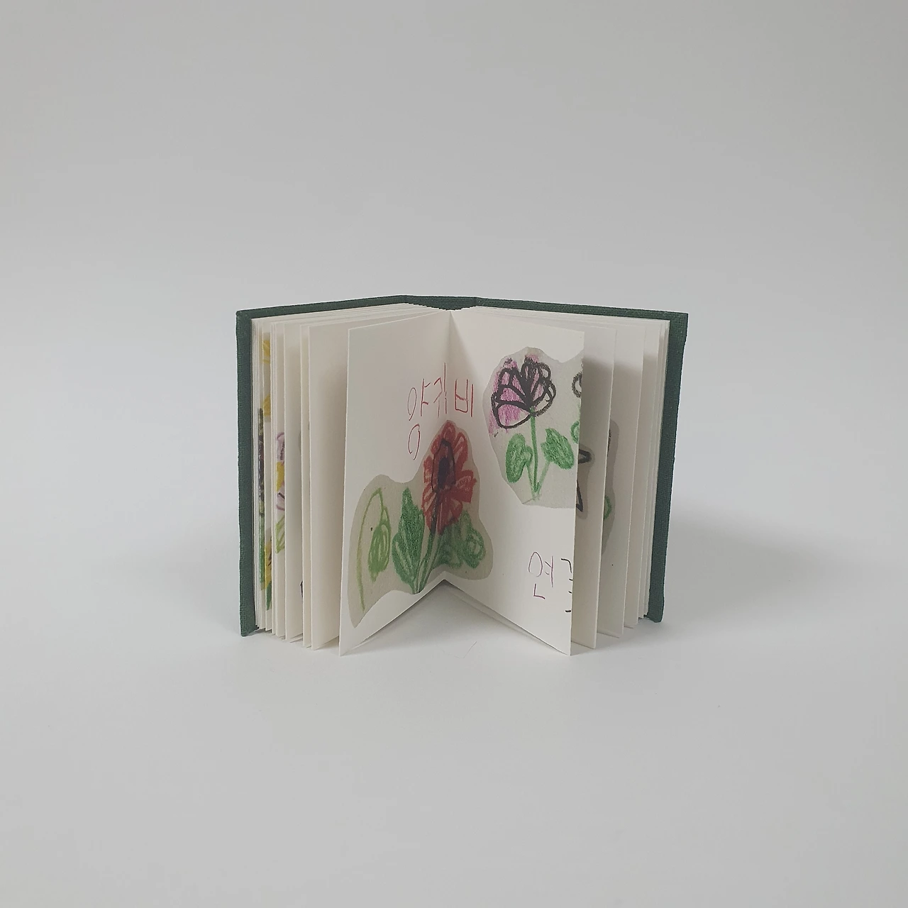 아이가 어릴 때 그려서 모아둔 꽃과 동물 그림을 편집하여 작은 그림책을 만들었습니다. 아코디언제본 형태로 표지와 내지 모두 수작업으로 제작합니다.