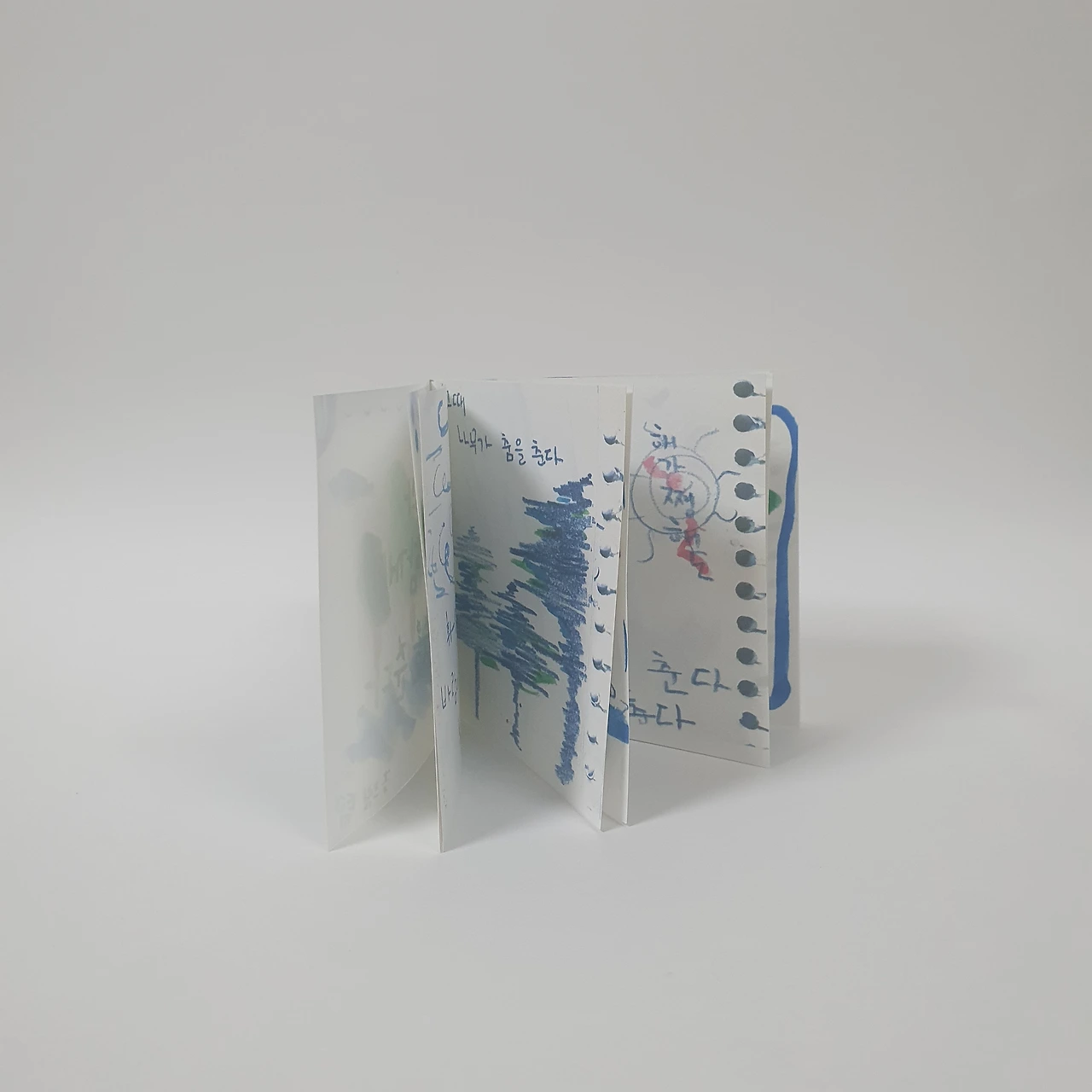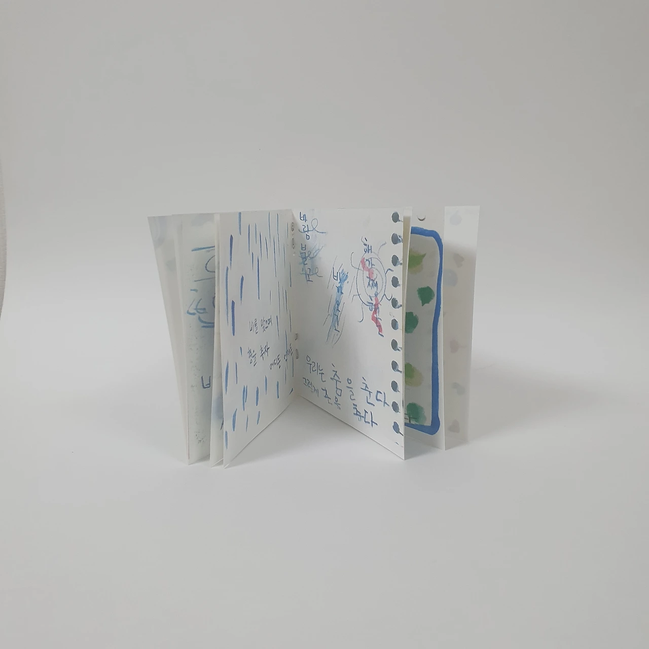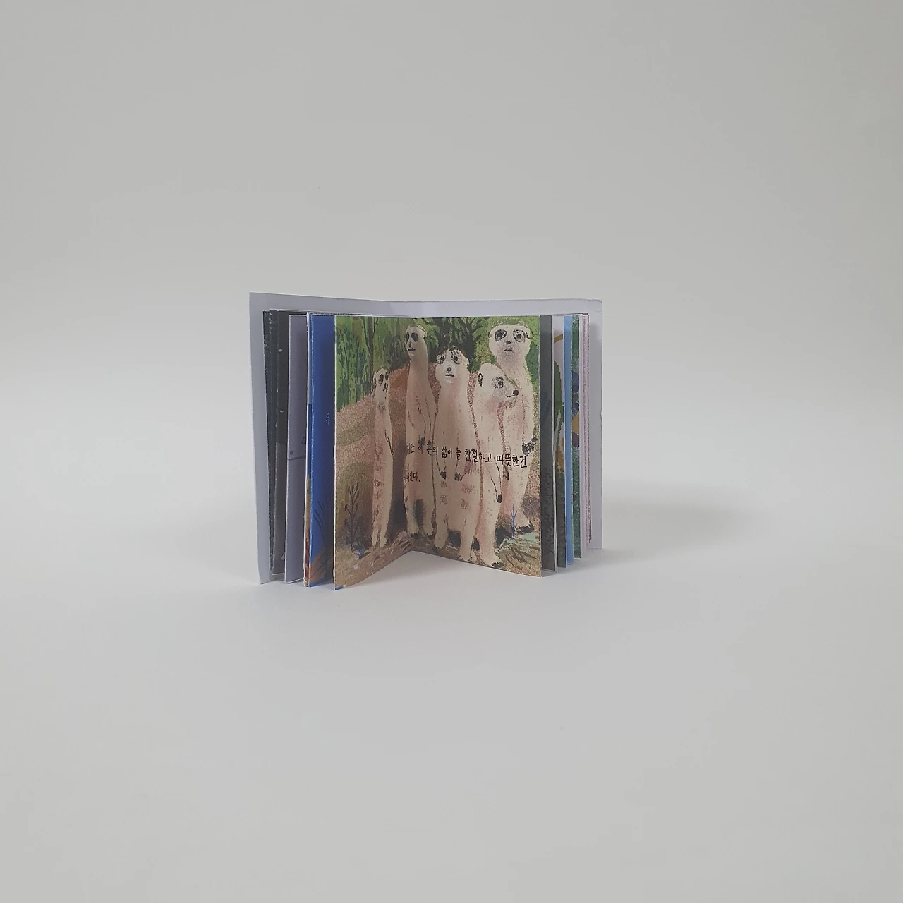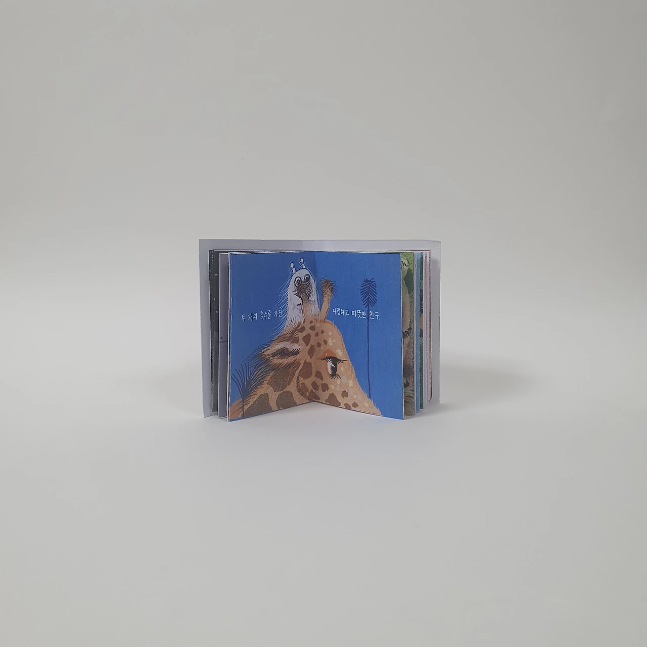 아이가 어릴 때 그려서 모아둔 꽃과 동물 그림을 편집하여 작은 그림책을 만들었습니다. 아코디언제본 형태로 표지와 내지 모두 수작업으로 제작합니다.