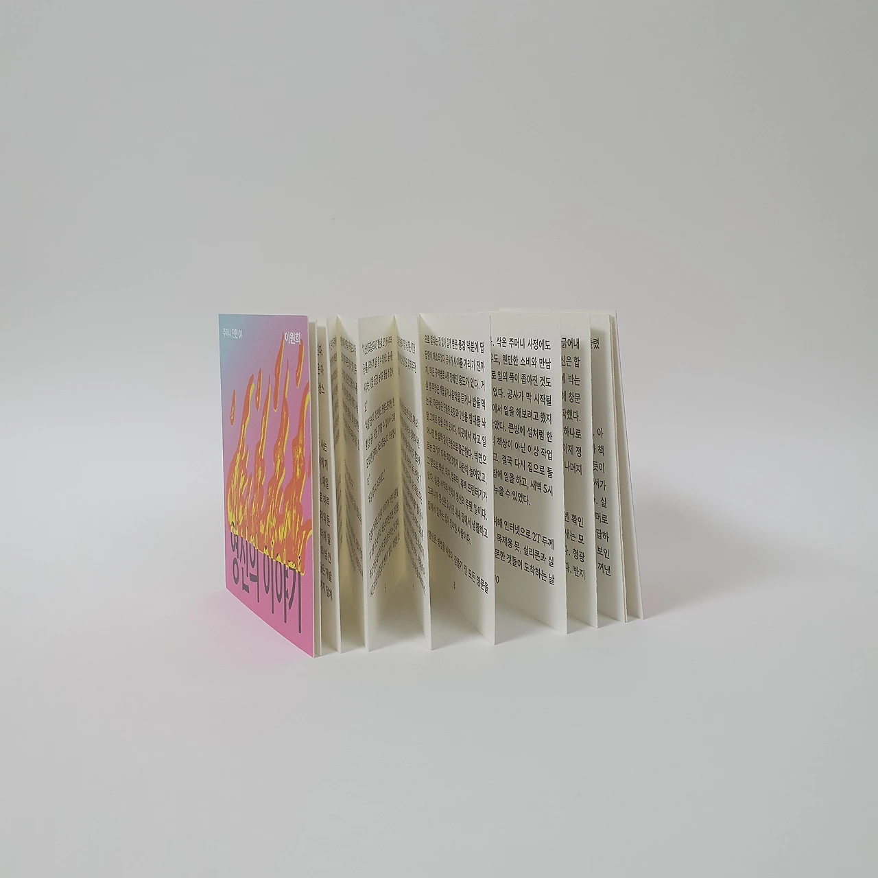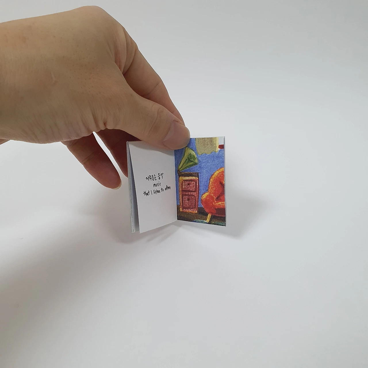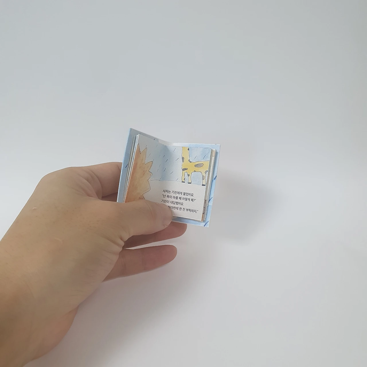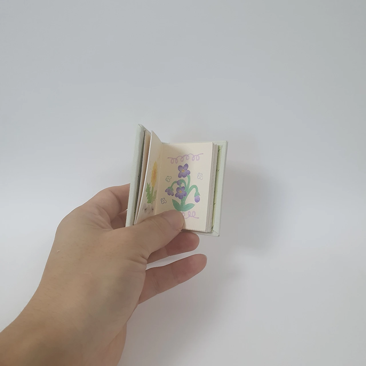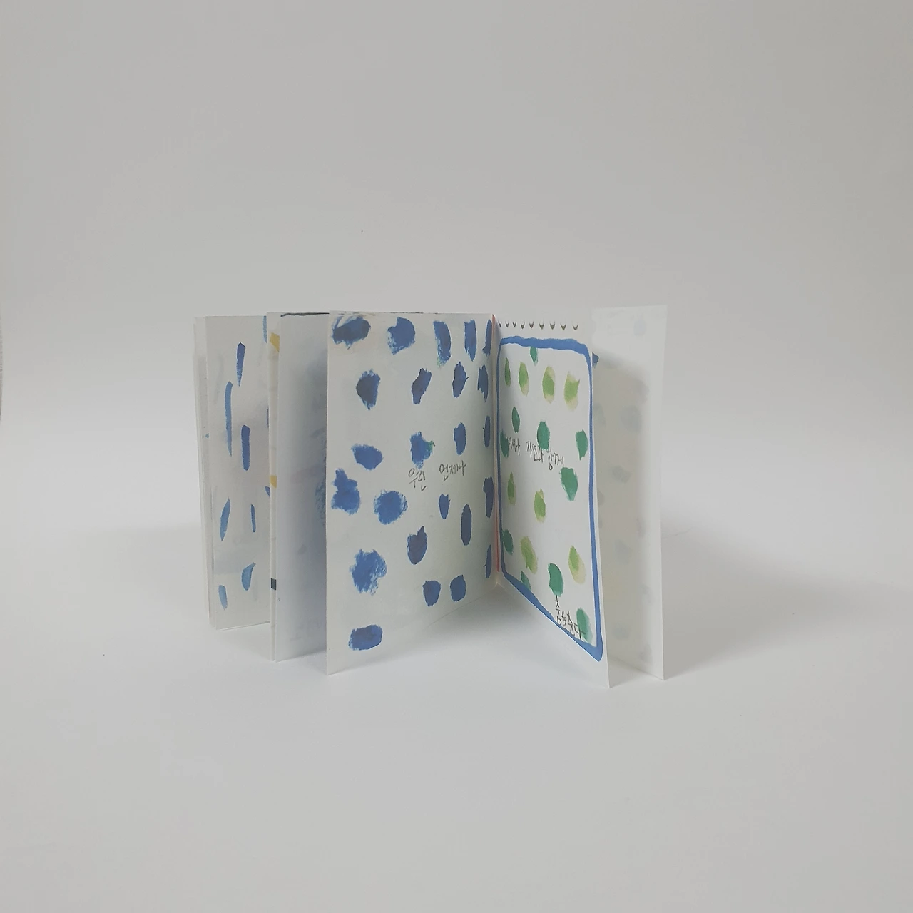 아이가 어릴 때 그려서 모아둔 꽃과 동물 그림을 편집하여 작은 그림책을 만들었습니다. 아코디언제본 형태로 표지와 내지 모두 수작업으로 제작합니다.