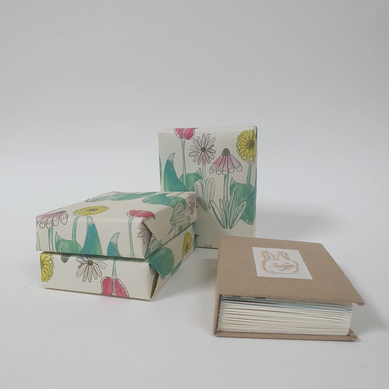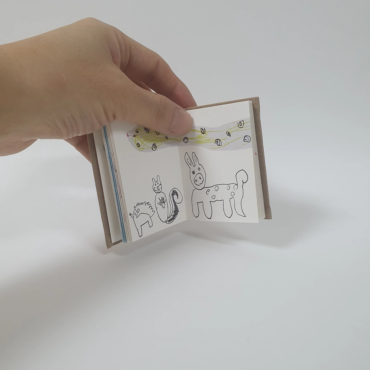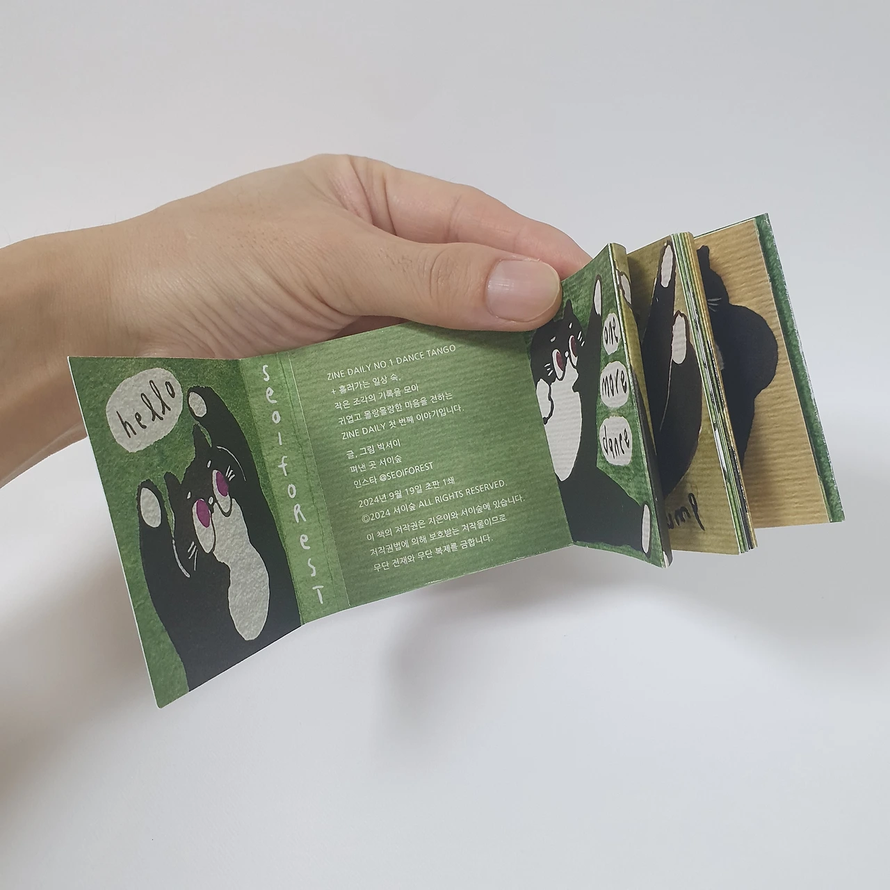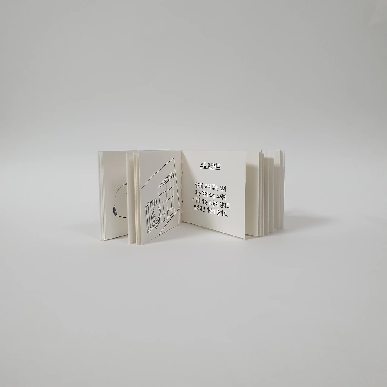 아이가 어릴 때 그려서 모아둔 꽃과 동물 그림을 편집하여 작은 그림책을 만들었습니다. 아코디언제본 형태로 표지와 내지 모두 수작업으로 제작합니다.