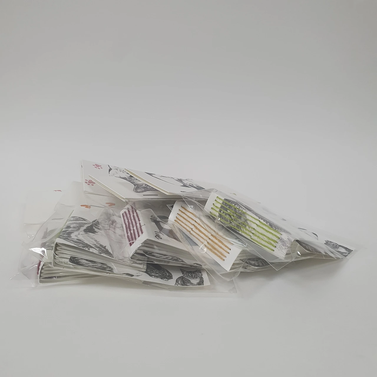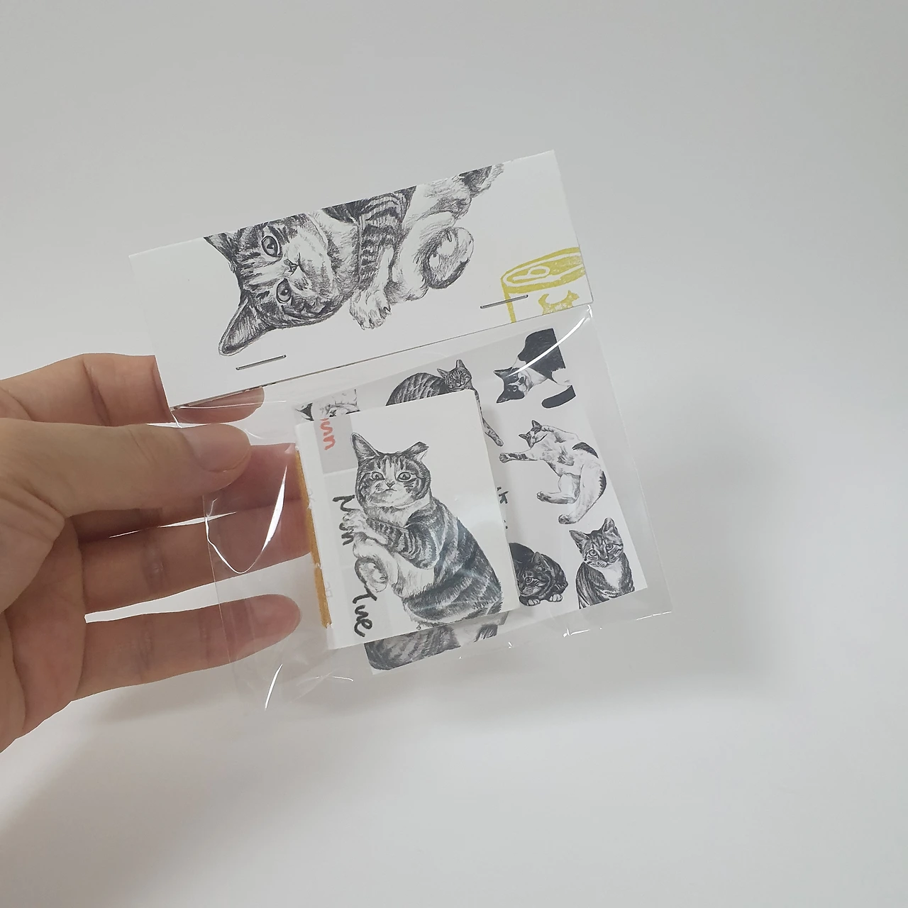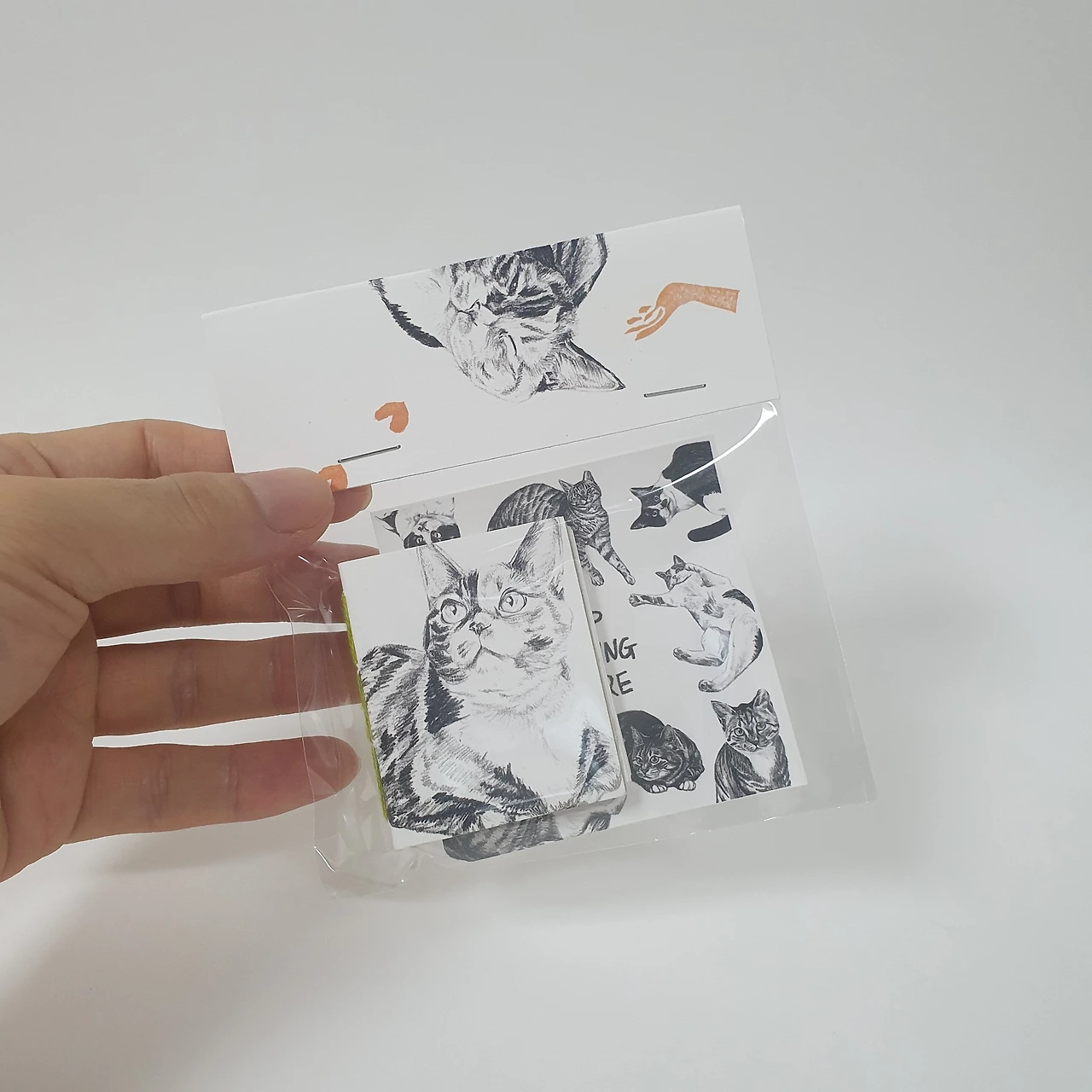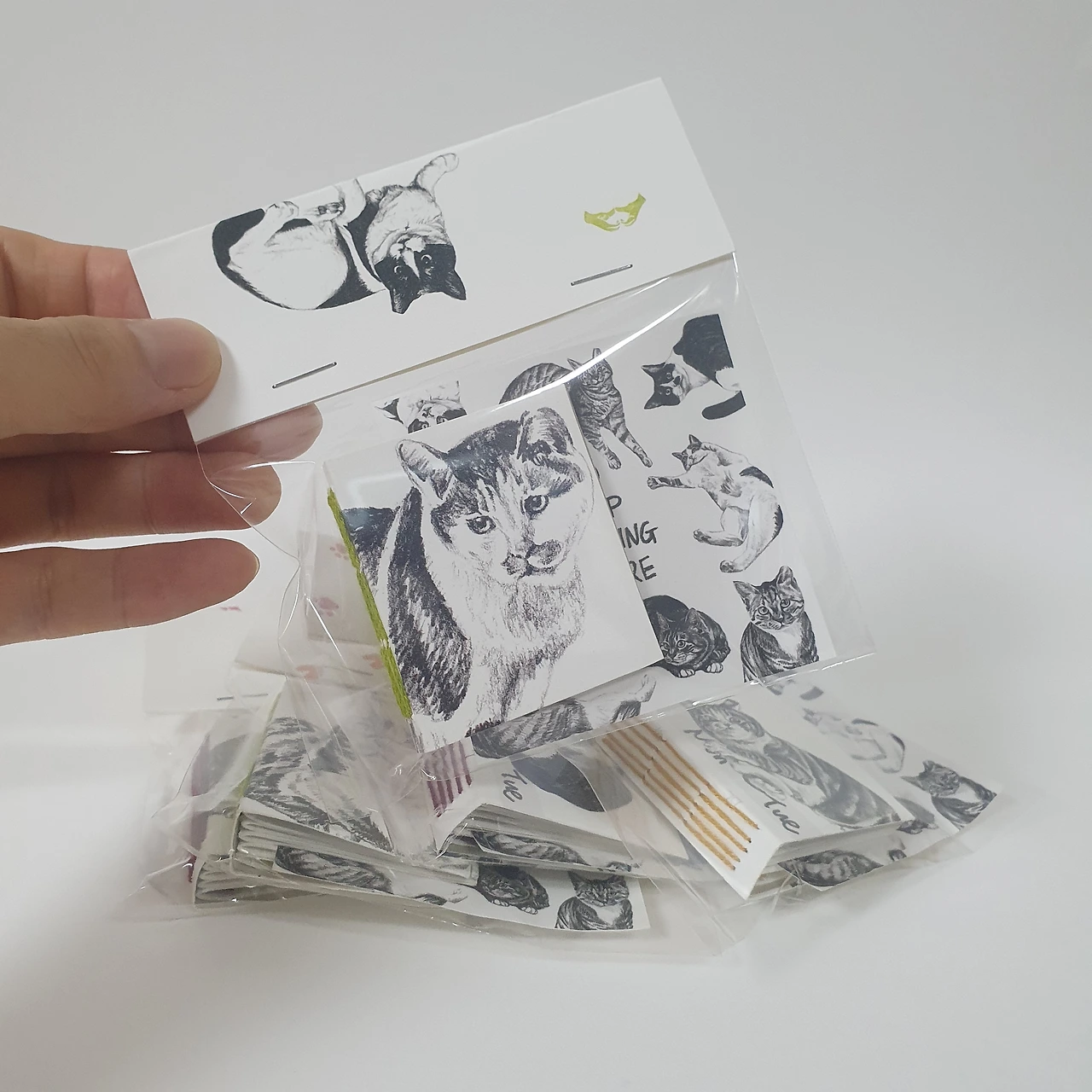 2024년을 위해 판매했던 달력 재고분을 표지로 리사이클해 하나하나 손으로 꿰맨 <냥냥이 그림책>입니다. 80개의 손그림과 100가지 문장으로 길에서 만난 고양이들의 이야기를 담았어요. 모델이 된 고양이는 구조되어 삶을 찾았거나 동물권행동kara에서 가족을 기다리고 있는 고양이들입니다. 4.5 × 5cm(책등 약 1cm)의 작은 사이즈지만 고양이의 만남, 구조, 반려, 이별까지 고양이의 일대기를 만나볼 수 있답니다.
