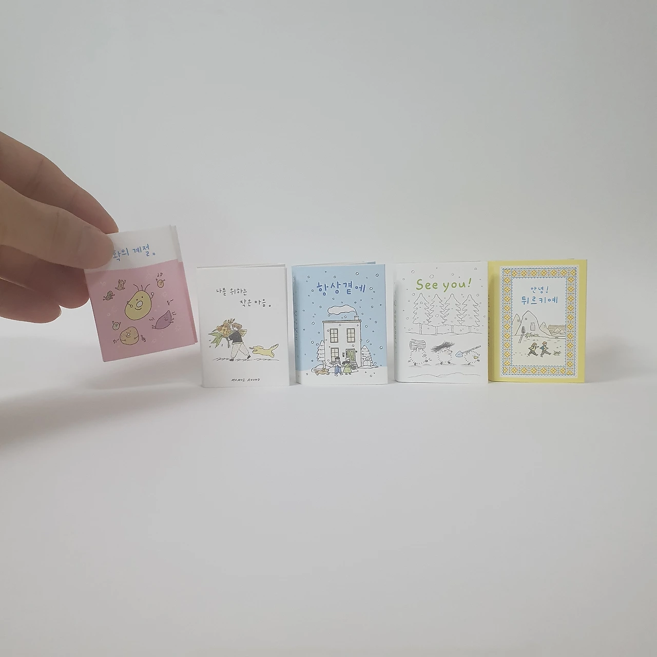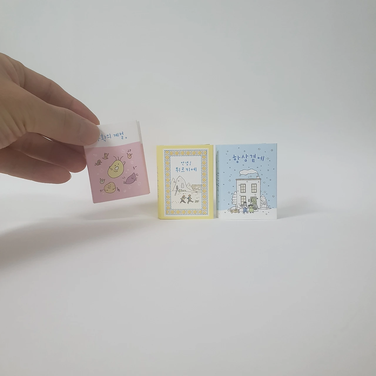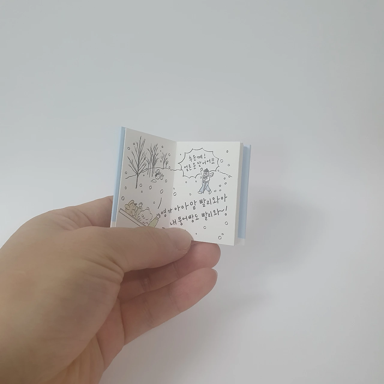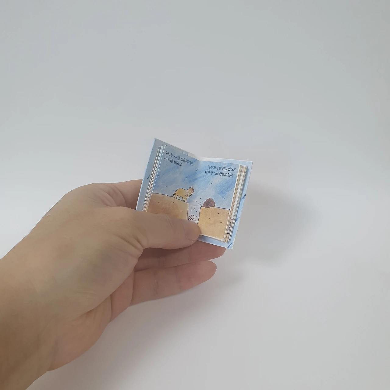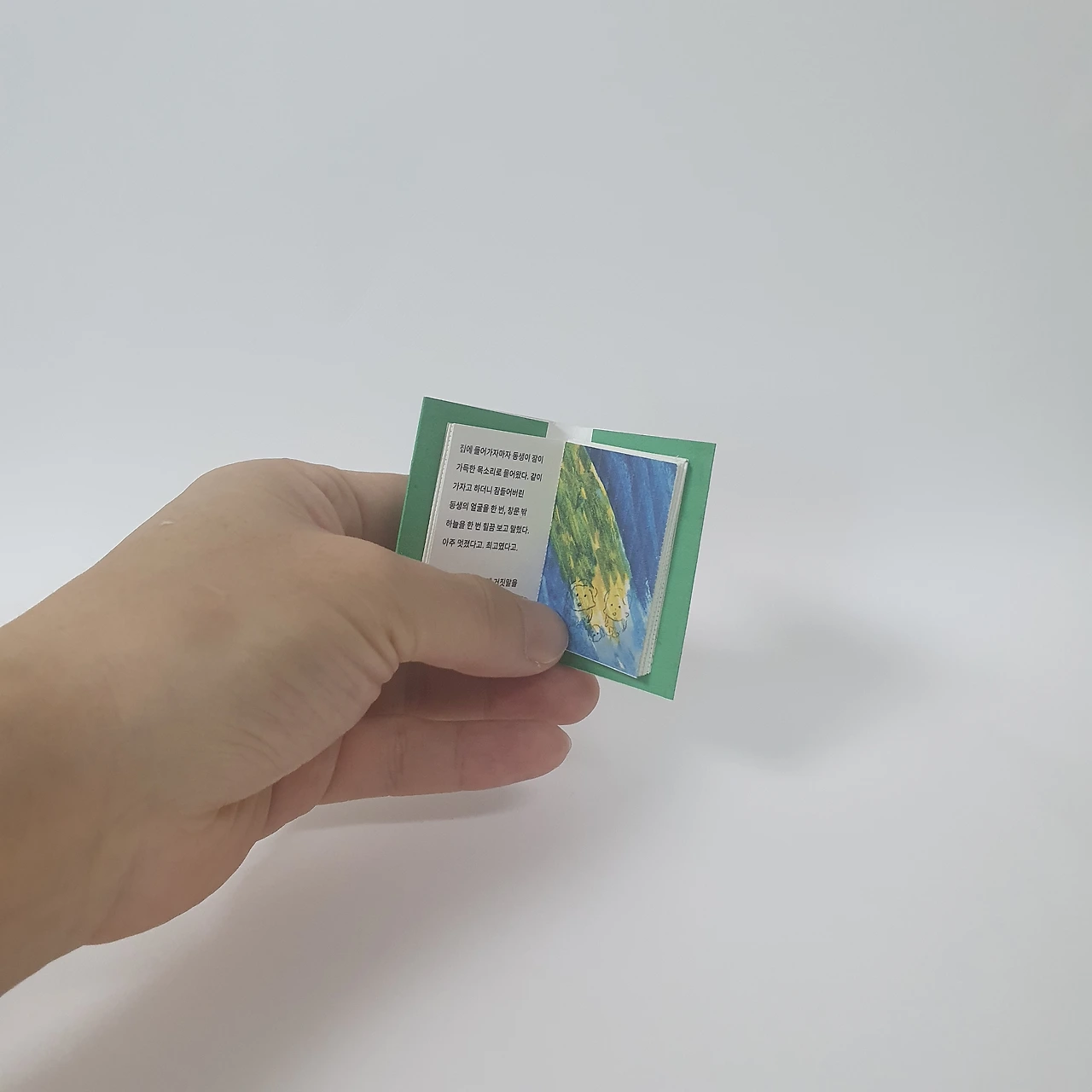 작은 동화책. 너무 작아서 잃어버릴까봐 자석을 붙였습니다.