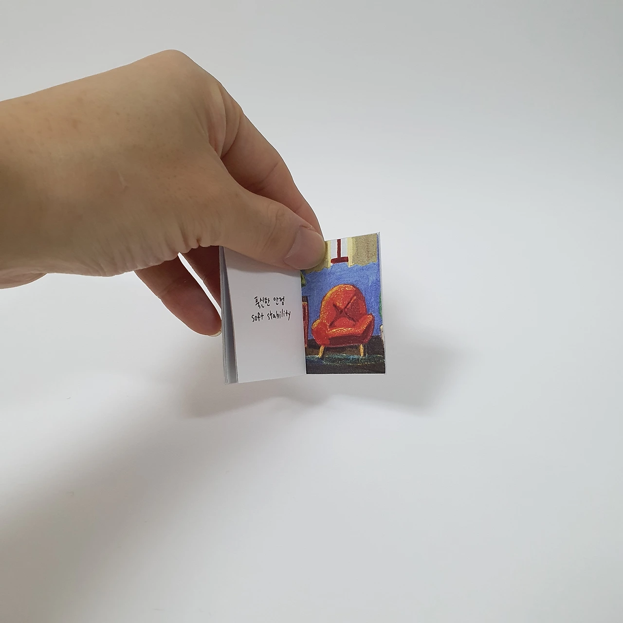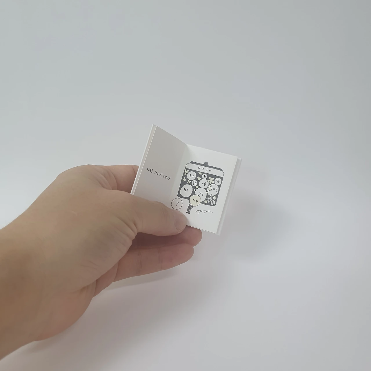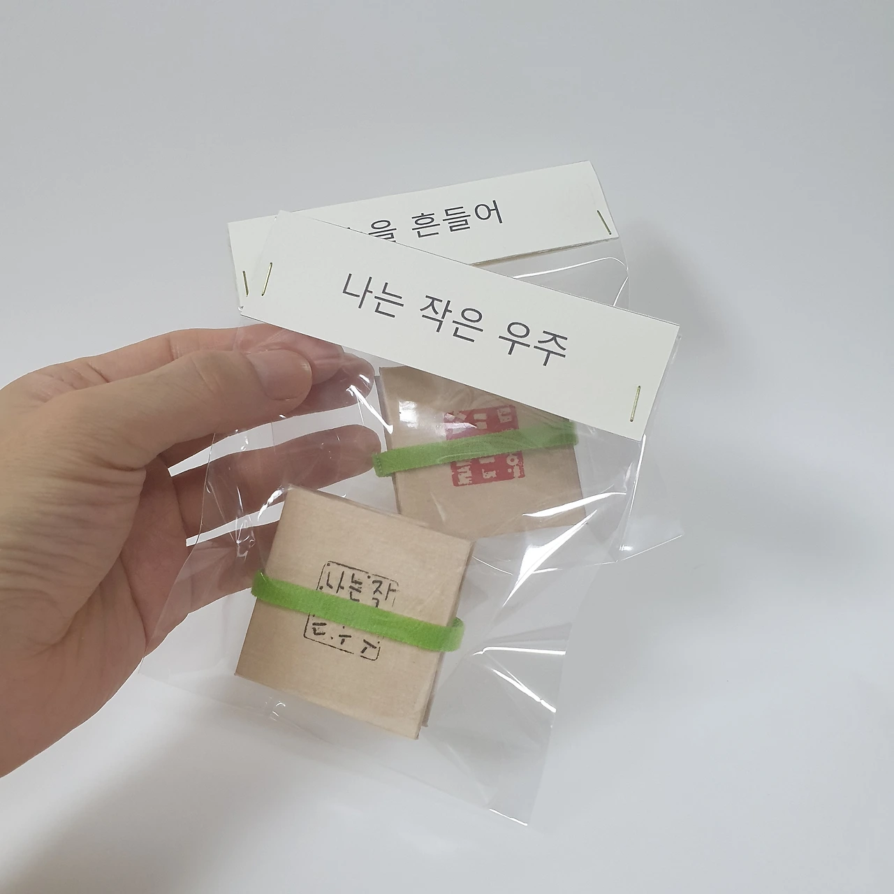 돌에 새긴 글씨입니다. 전각은 작은 우주와 같아요. 작은 돌안에 오묘한 미학이 숨어있답니다. 각각의 새김글이 인주에서 종이로 옮겨져, 언제나 오직 단하나의 페이지가 됩니다. '나는 작은 우주'와 '손을 흔들어' 2종이 있지만, 표지의 색만 다르고 내지는 동일합니다.