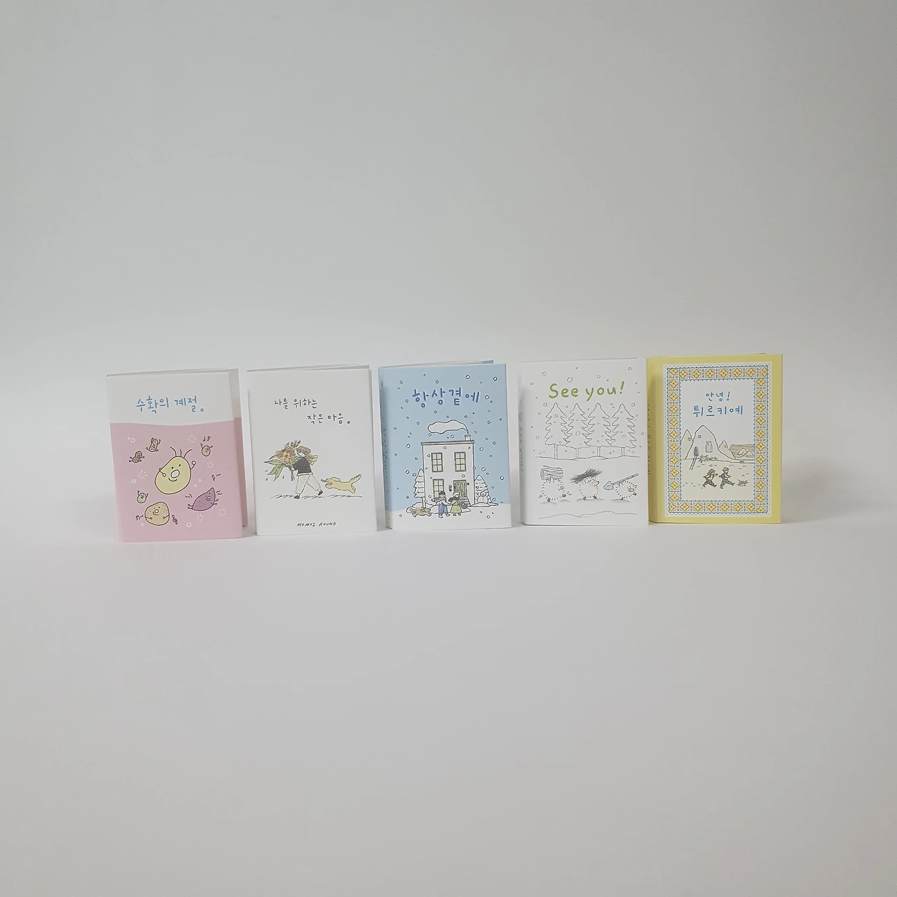 '풀꽃의 인사'는 산책하며 만나는 꽃들을 가볍게 수채화로 그리고 작고 소중한 책으로 담았어요. 곁에 두고 잔잔히 스며드는 시간이 되길 바랍니다.