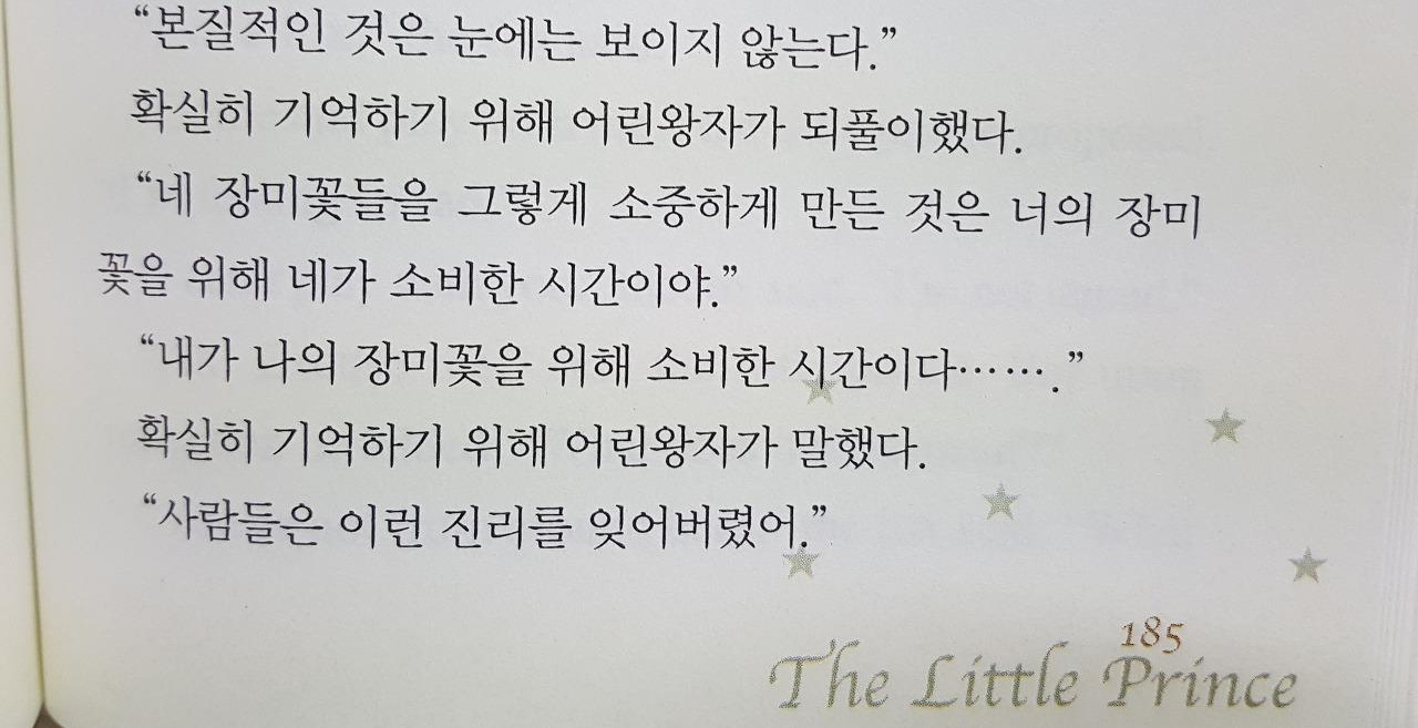 《내 꽃이 소중한 건 내가 물을 주고 꽃을 가꾼 시간 때문》이 아닌가.