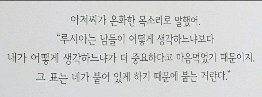 - "남들이 어떻게 생각하느냐보다 내가 어떻게 생각하느냐가 더 중요하다고 마음먹었기 때문"이라는 말에 대해 어떻게 생각하니?