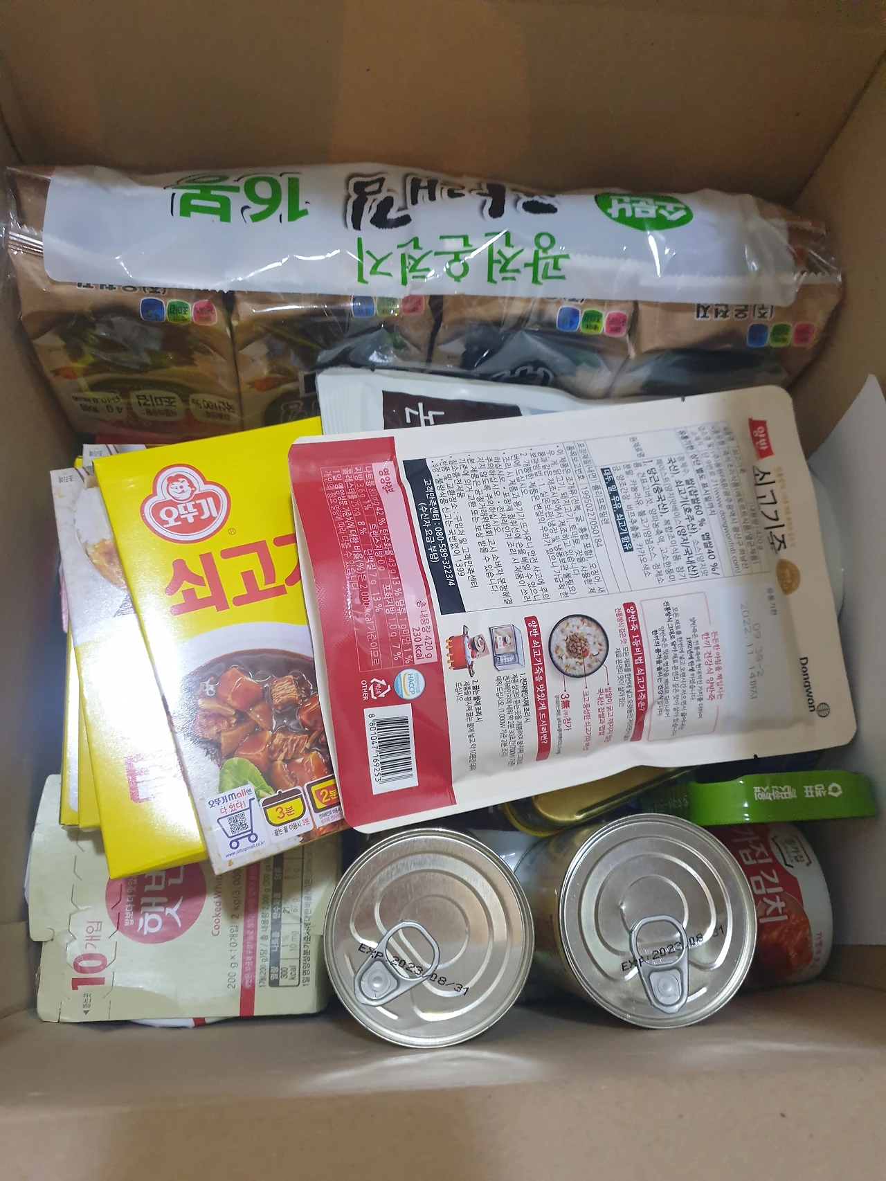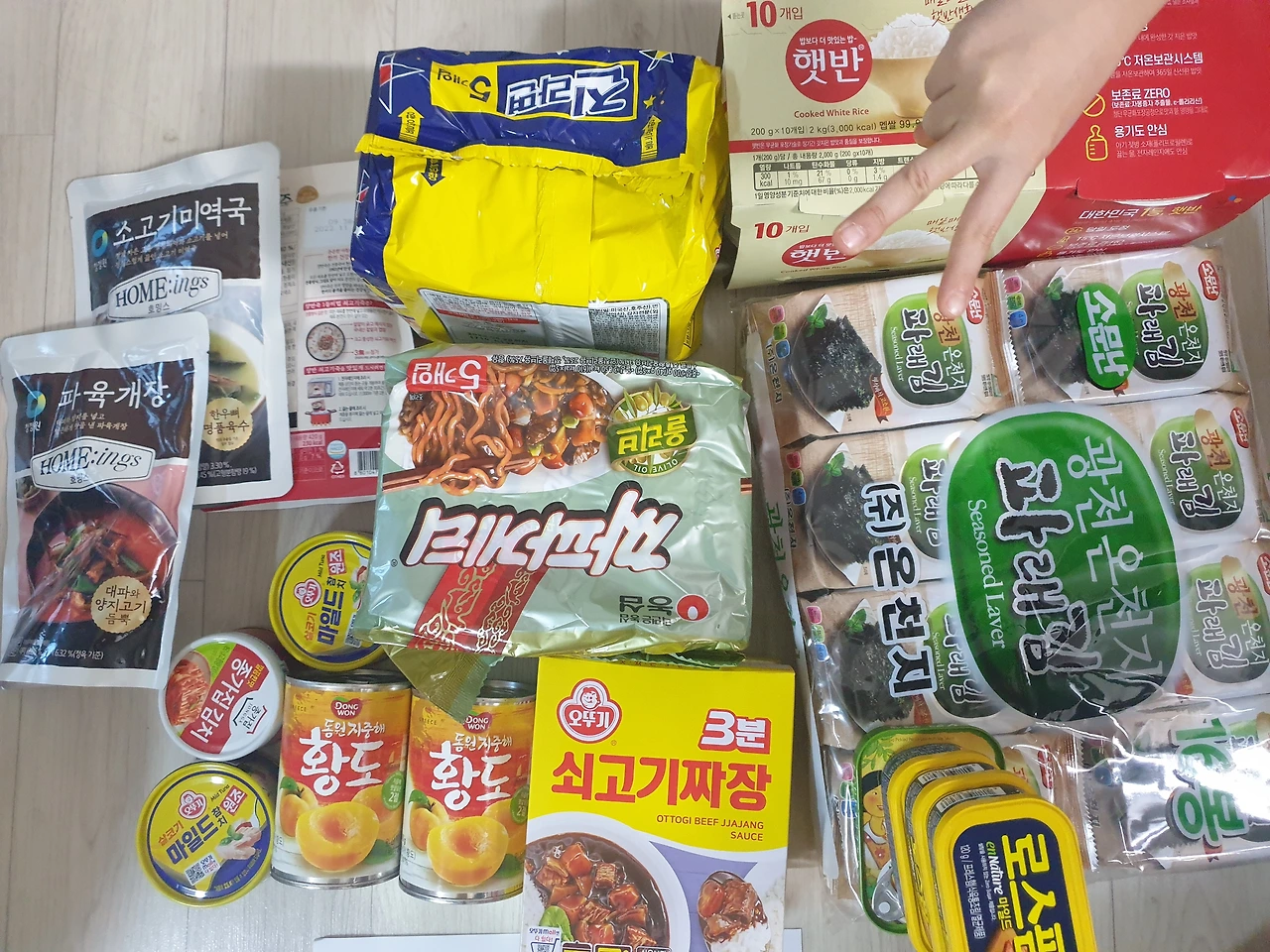 격리 해제를 앞두고 집에 도착한 보급품. 저 손의 주인공은 이번에 밀접접촉자로 자가격리에 들어간 사랑이