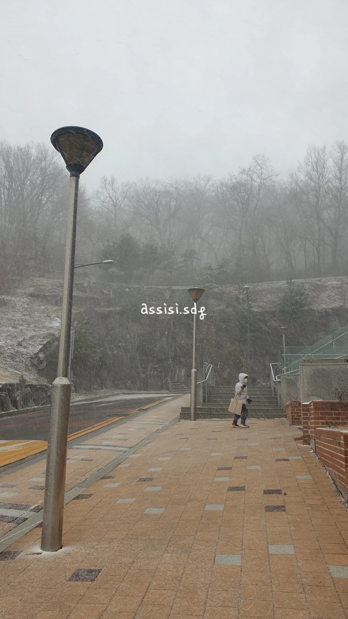 눈보라를 뚫고 가야했던 도서관. 두 아이는 사진찍는 내 뒤에 있다.
