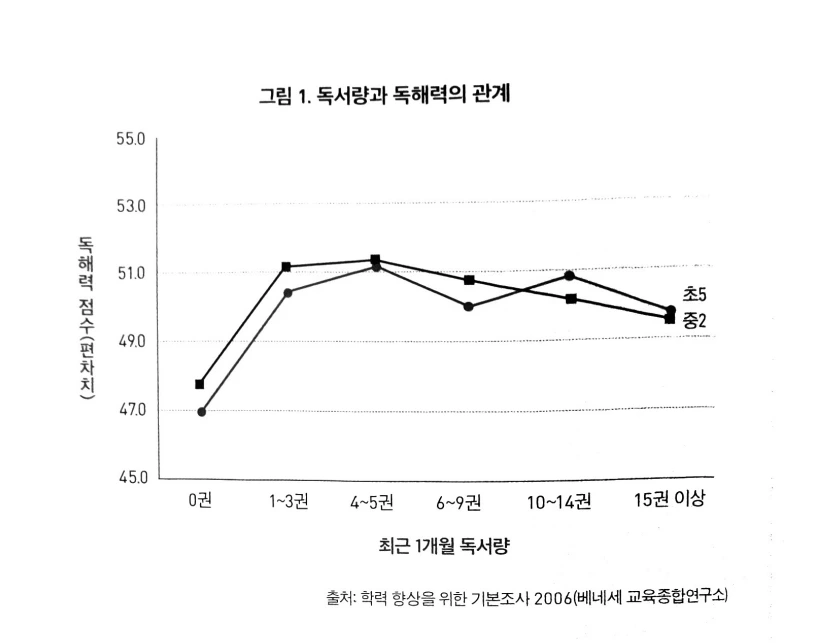 우리나라 아이들이 어릴 때 읽은 책의 양은 학령기 이후 문해력과 별 상관이 없다고 서울대학교 아동가족학과 최나냐 교수가 말한다. 그러나 영미권의 연구 결과, '영유아기에 책을 많이 읽은 아이가 학령기 이후에도 읽고 쓰기를 잘한다고 확인된다. 여기에서 알 수 있는 사실은, 책을 무조건 많이 읽는 것이 언어발달을 좌우하지 않음을 뜻한다. 단 한 권의 책을 읽더라도 좋은 책을 제대로 읽어야 한다는 것이다.