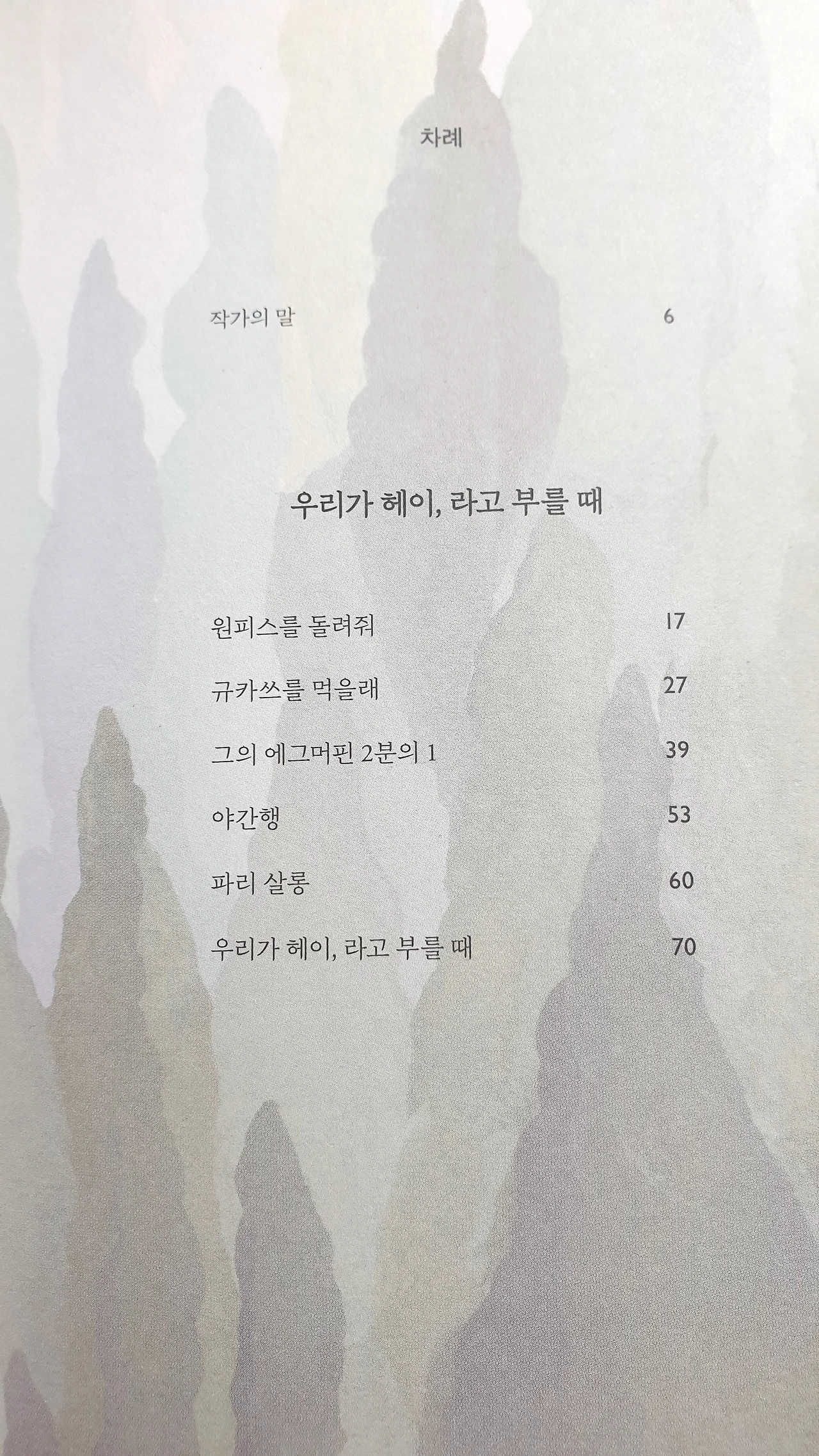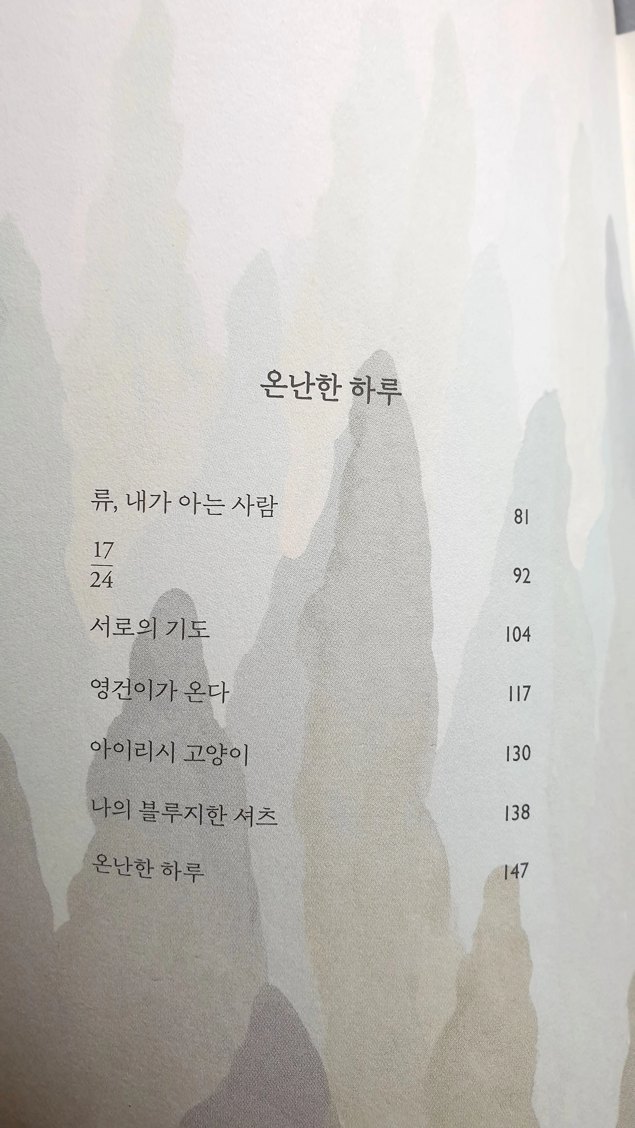 이 밖에 [우리가 헤이, 라고 부를 때], [류, 내가 아는 사람], [나의 블루지한 셔츠], [온난한 하루]가 인상깊은 책이다. 짧은 소설을 읽고 싶을 때, 사람과 사람이 만나 살아가는 일상을 곱씹고 싶을 때, 다른 사람의 다양한 생각이 궁금할 때 읽기 좋은 책이다.