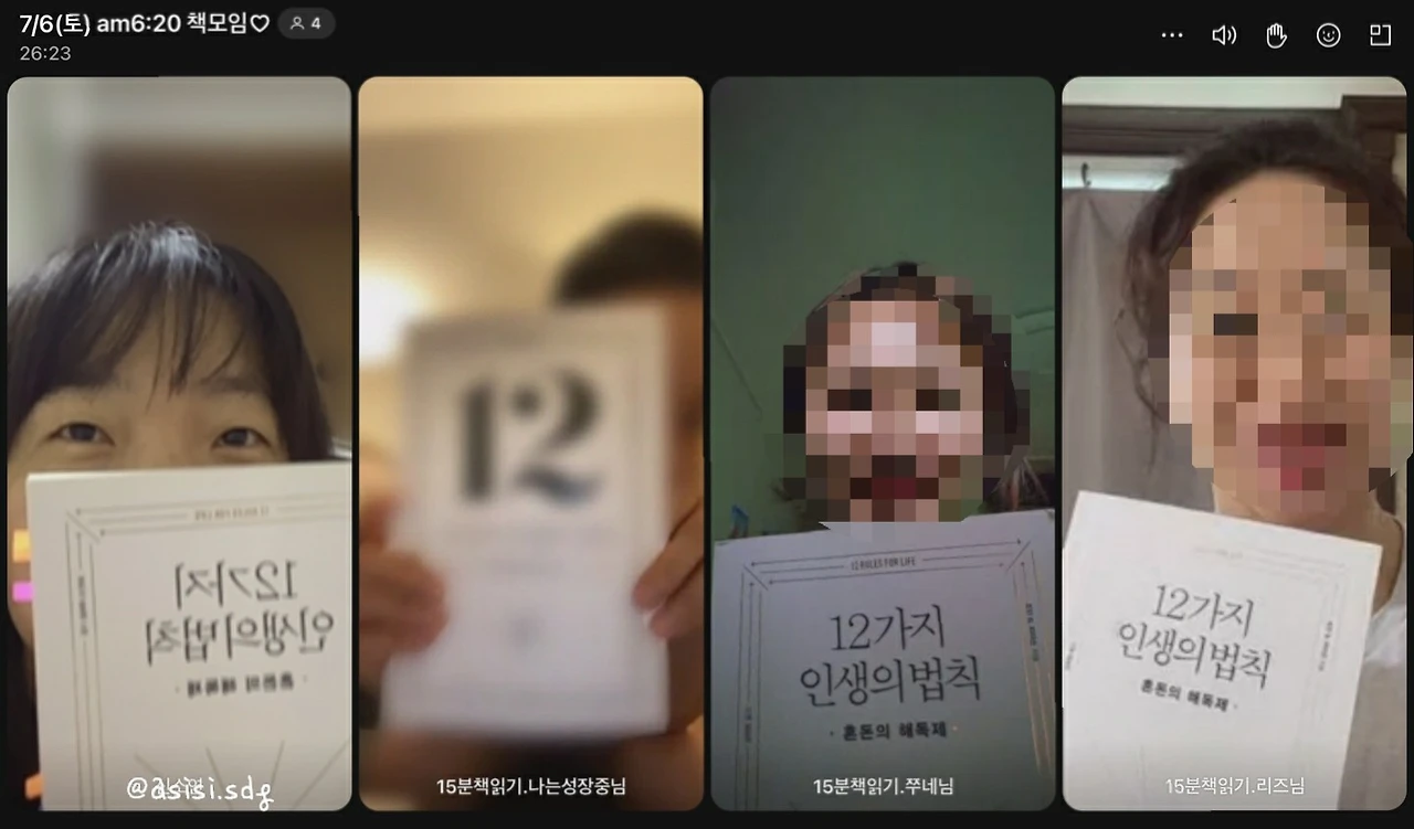오늘은 소그룹 토의하기 가장 좋은 인원인 4명이 모였다. 마침, 4명 모두 크리스천이라 공감대가 형성되어 그 나눔이 풍성했다. 책엔 없는 나만의 인생의 법칙도 나누며 생각의 장이 확대되었다. 새로운 책을 알게 되어 감사, 모임 아니었으면 읽기 못했을 분량을 소화함에 감사한 시간이라는 게 참여자들의 고백이다. 한달 후에 있을 책모임, 어떤 이야기를 나누게 될까? 늘 그렇듯, 벌써부터 책모임이 기다려진다.