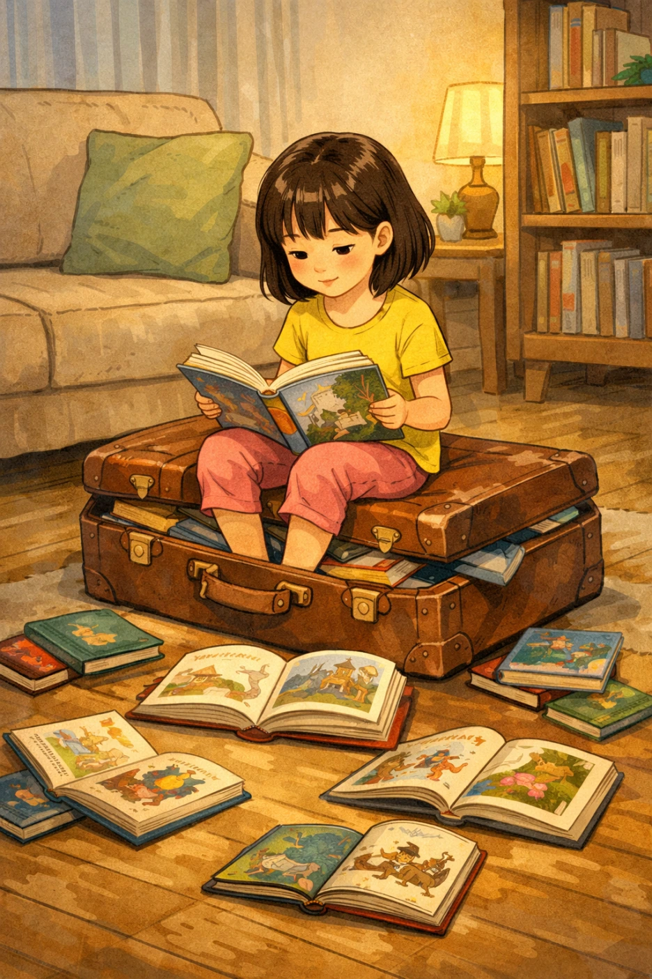 밤에 화장실 다녀온다던 아이가 돌아오지 않았다. 무슨 일인가 싶어 가보니 아니나 다를까, 호기심에 열어본 트렁크 속 책에 푹 빠져있었다.