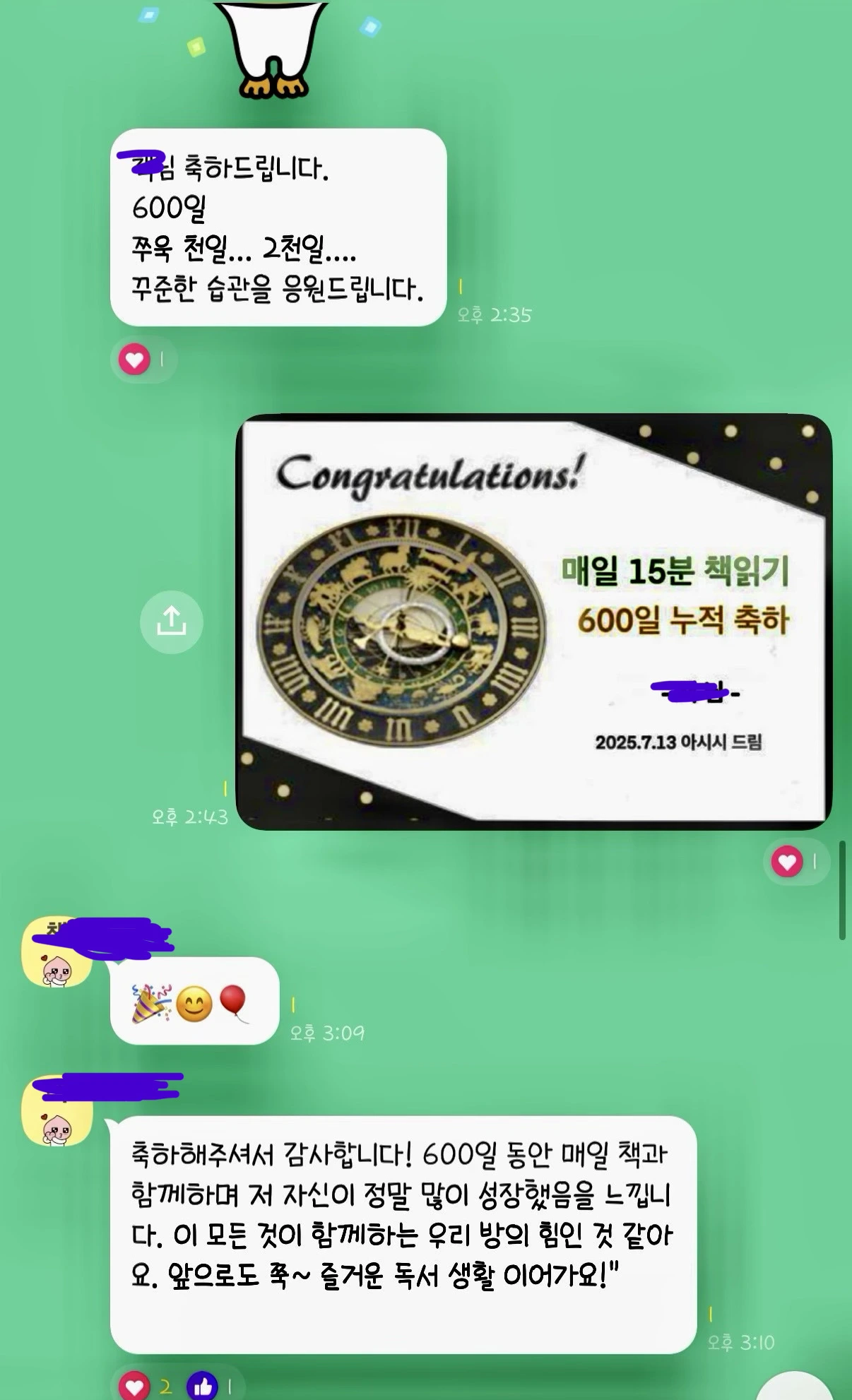 600일 동안 매일 책과 함께하며 저 자신이 많이 성장했음을 느낍니다.