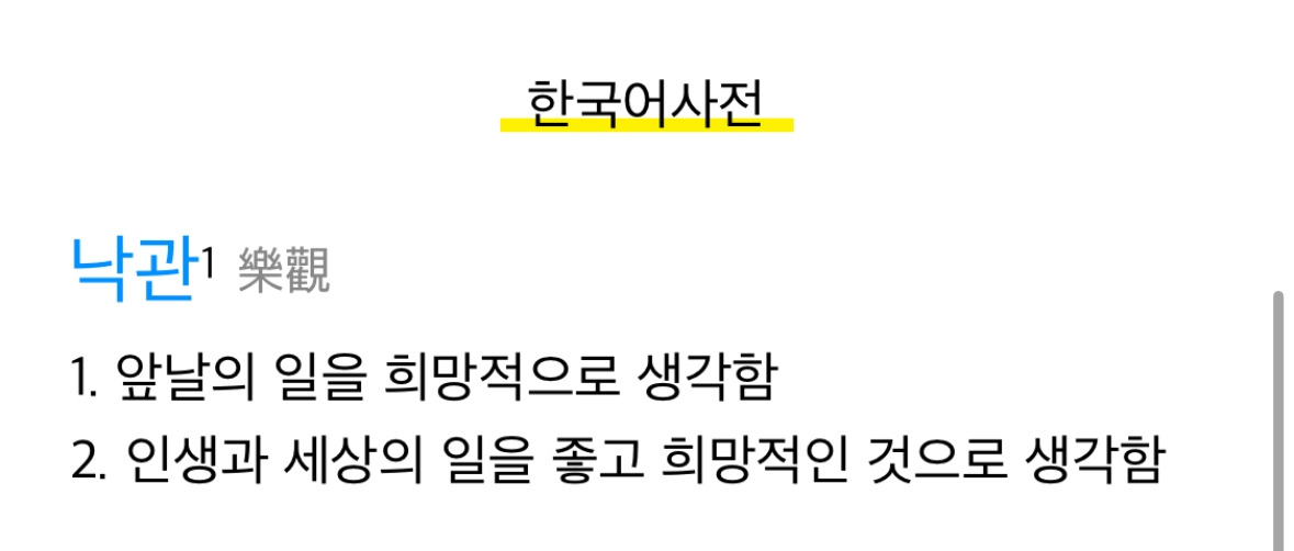 비관과 정면 대치하는 개념은 긍정이 아닌 낙관이다. 낙관 역시 앞날을 희망적으로 바라보는 ‘관점’에 불과하며, 이러한 관점의 변화만으로는 현실에서 아무것도 달라지지 않는 것이 당연하다.