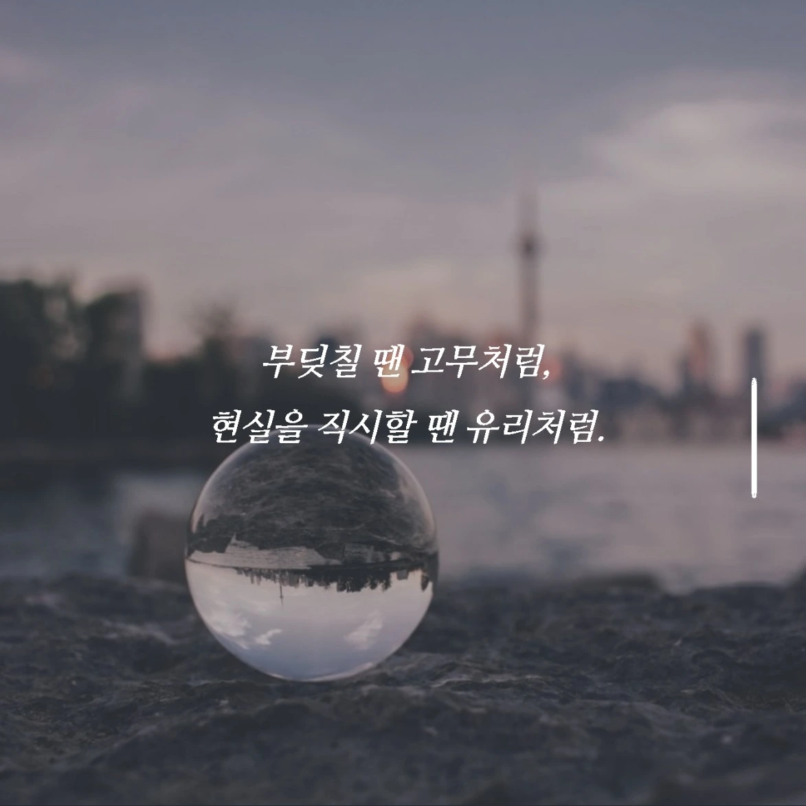 긍정은 내가 어떻게 바라보고자 하는 ‘주의’가 아니다. 그것은 다만 유리처럼 똑바로 바라보고 고무처럼 두려움 없이 달려드는 행동이다.