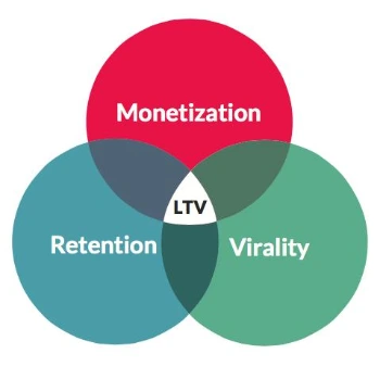 LTV를 구성하는 세 가지 요소를 살펴보면 그 해답이 보인다. LTV는 수익화, 유지율, 바이럴리티로 구성되어 있기에 이 세 가지 측면에서 개선을 꾀할 수 있다.