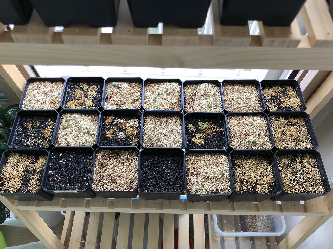중간 중간 보이는 리톱스들은 페네가 전혀 발아되지 않을것 같다는 불안감에 옮겨 심었던 리톱스 믹스 + 루비로 기억된다. 다행히 저면을 마치고 더 많은 발아를 해 줬던 페네! 고맙다 ㅠㅠ