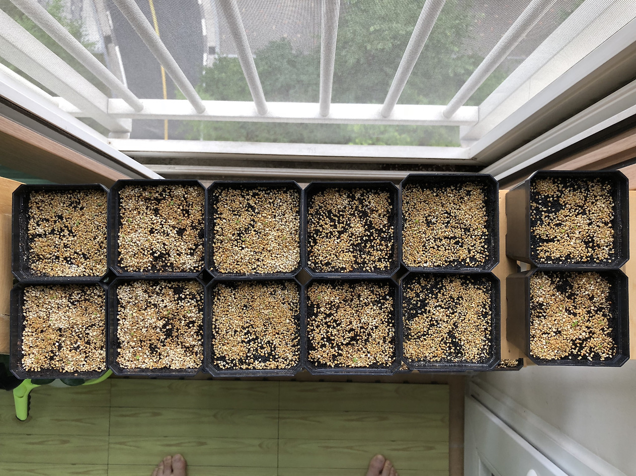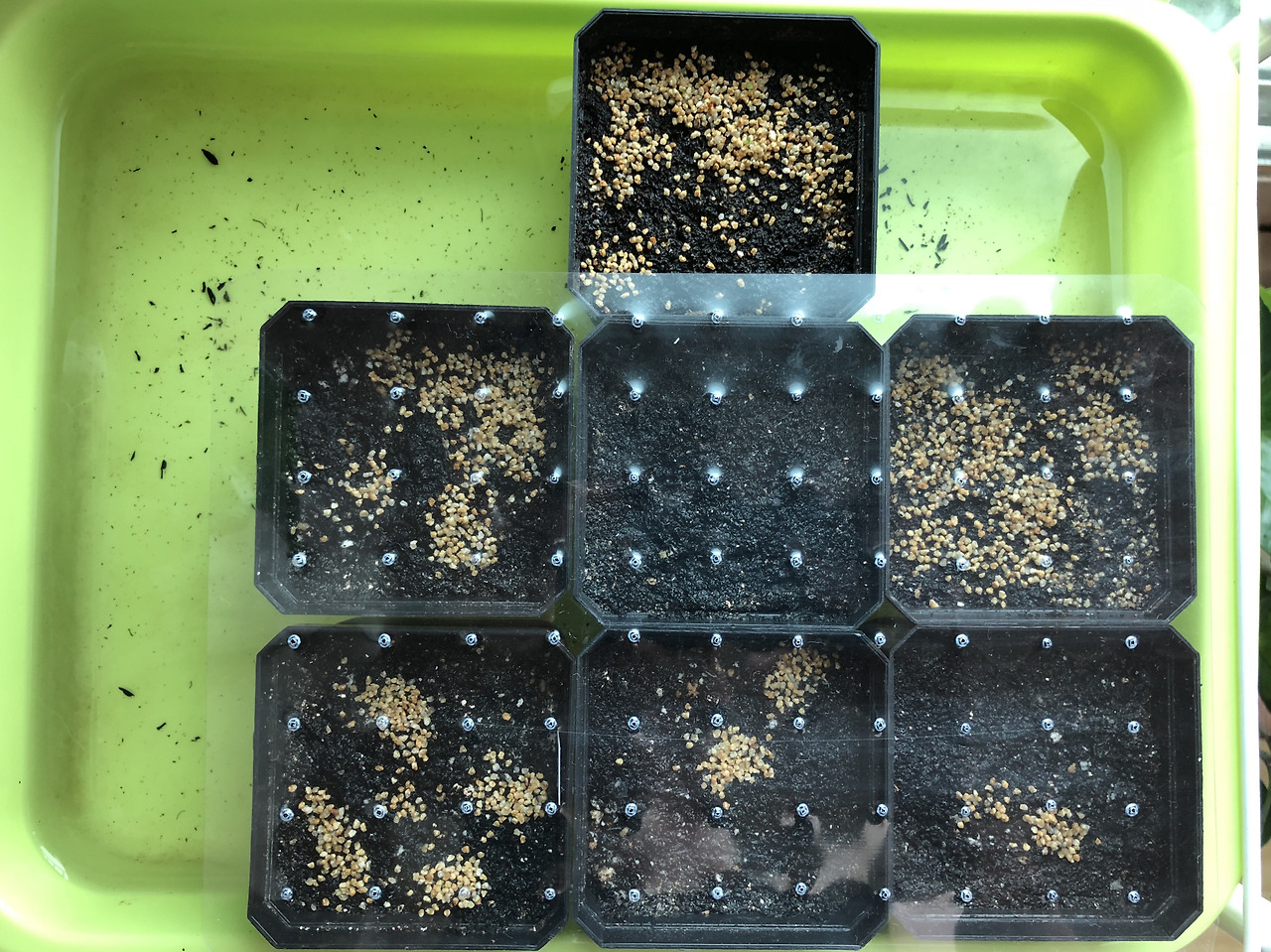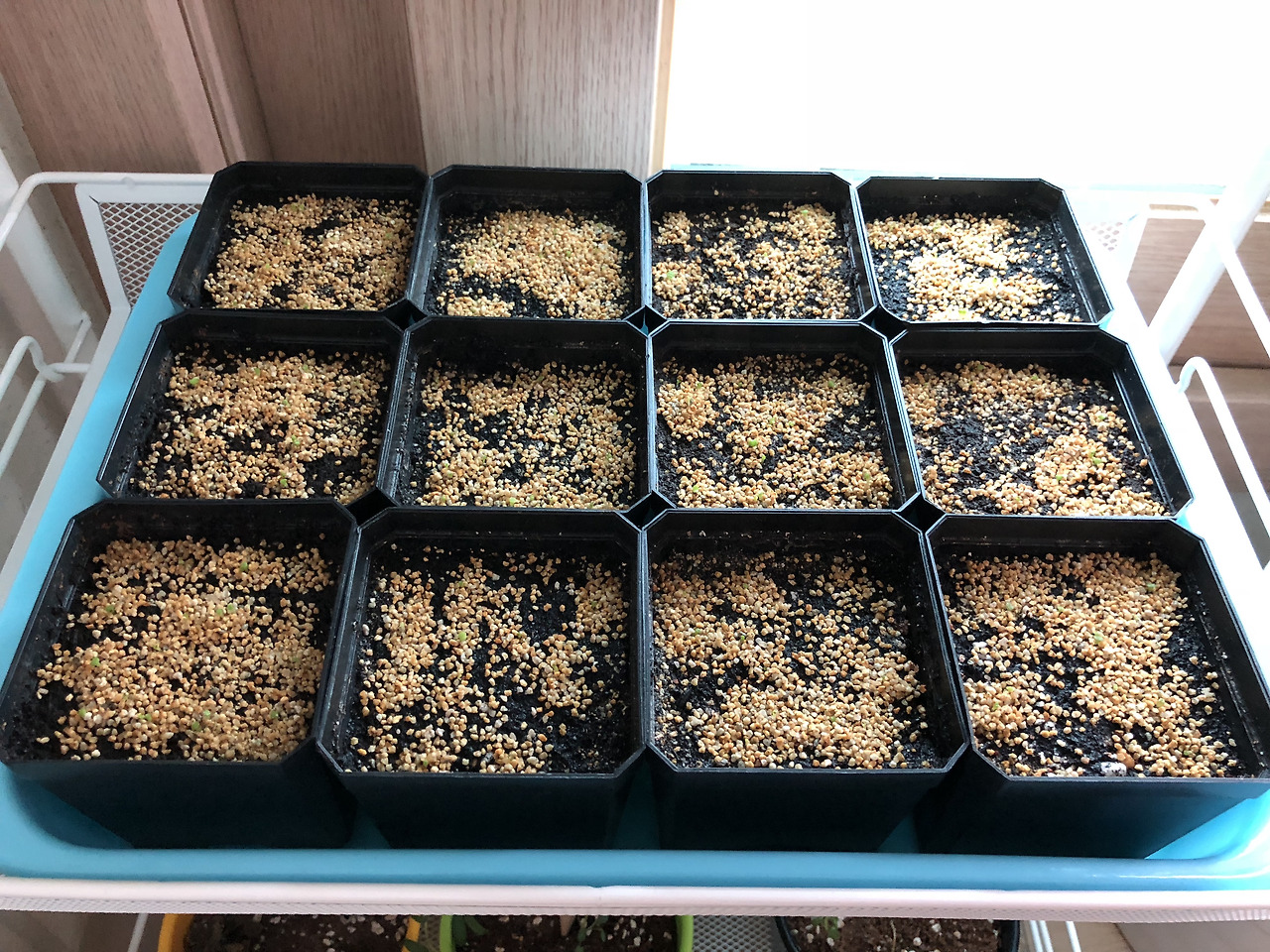 혹시 몰라 딘터 화분의 화산석을 이쑤시개로 볶아(?)줬다. 당시 파종을 처음 하는지라 화산석 복토를 너무 두껍게 한게 실수였던것 같아서;;;