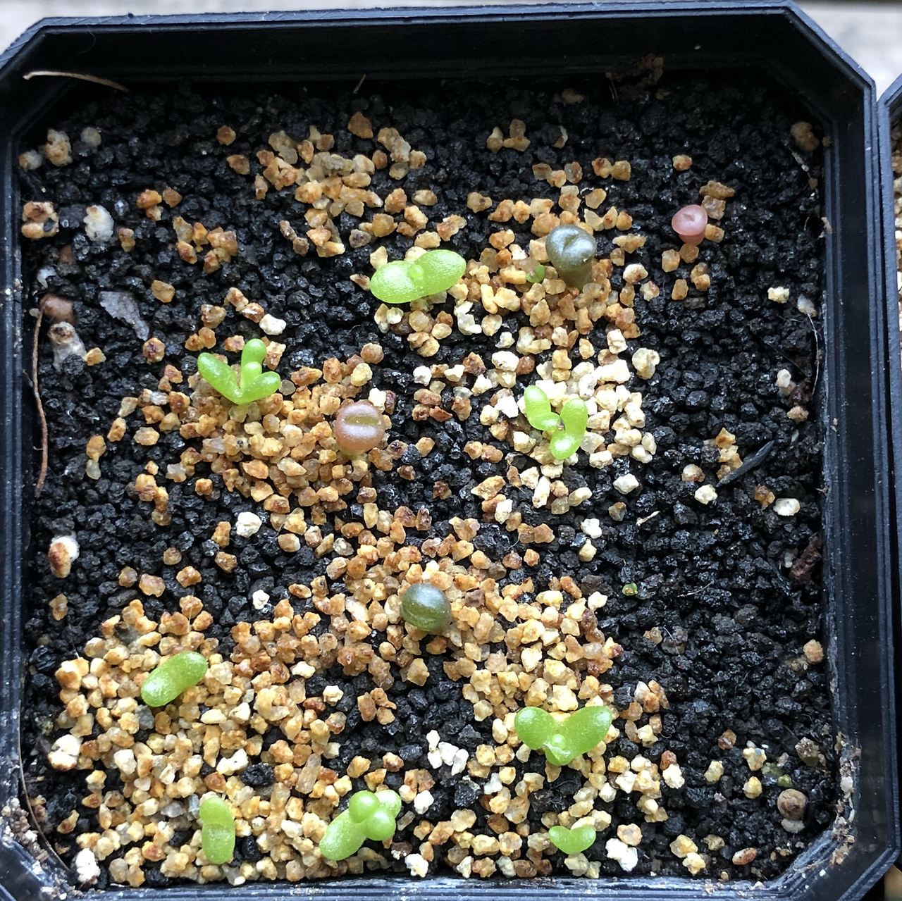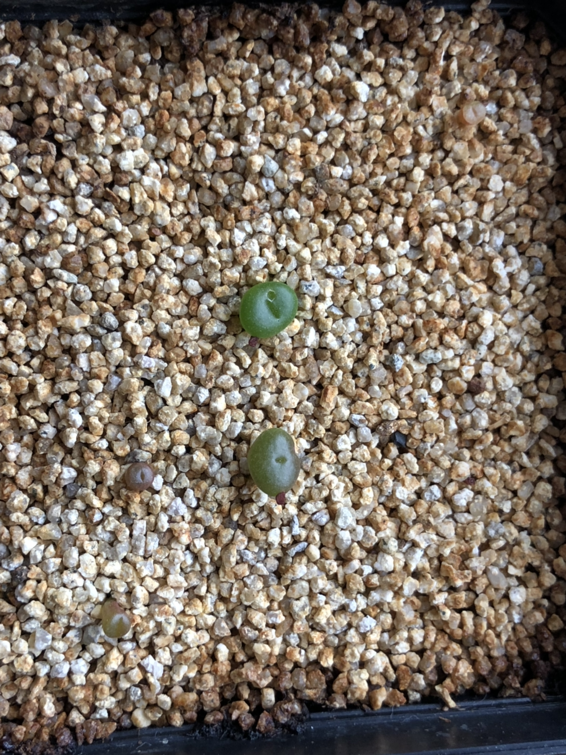 두번째 딘터 화분에서 숨어있던 싹 하나를 발견해서 광복절에 파종한 리톱스 화분으로 옮겨줬다. 100립중 6립 발아, 생존 4립;; 처참하다.