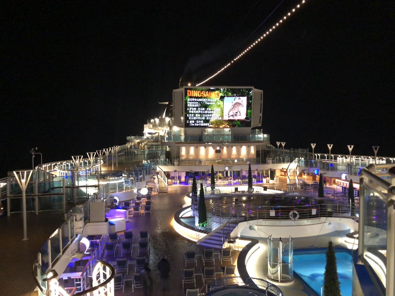 실제로 3,560명의 승객을 수요 할 수 있는 마제스틱 프린세스호는 여태껏 내가 만나왔던 선박들과는 차원이 다른 압도적인 크기였다. 최신형 선박답게 전반적으로 깔끔하고 세련된 선내 시설은 물론 해가 저물고 캄캄한 밤이 되면 형형색색으로 물드는 오픈덱은 때로 웅장한 느낌까지 선사했다. 가라오케와 공차, 마작룸 등을 처음 마주하게 되었을 때는 승선 경험이 있는 나 조차도 '크루즈에 이런 시설도 있구나' 또 한 번 감탄을 금치 못하였다.