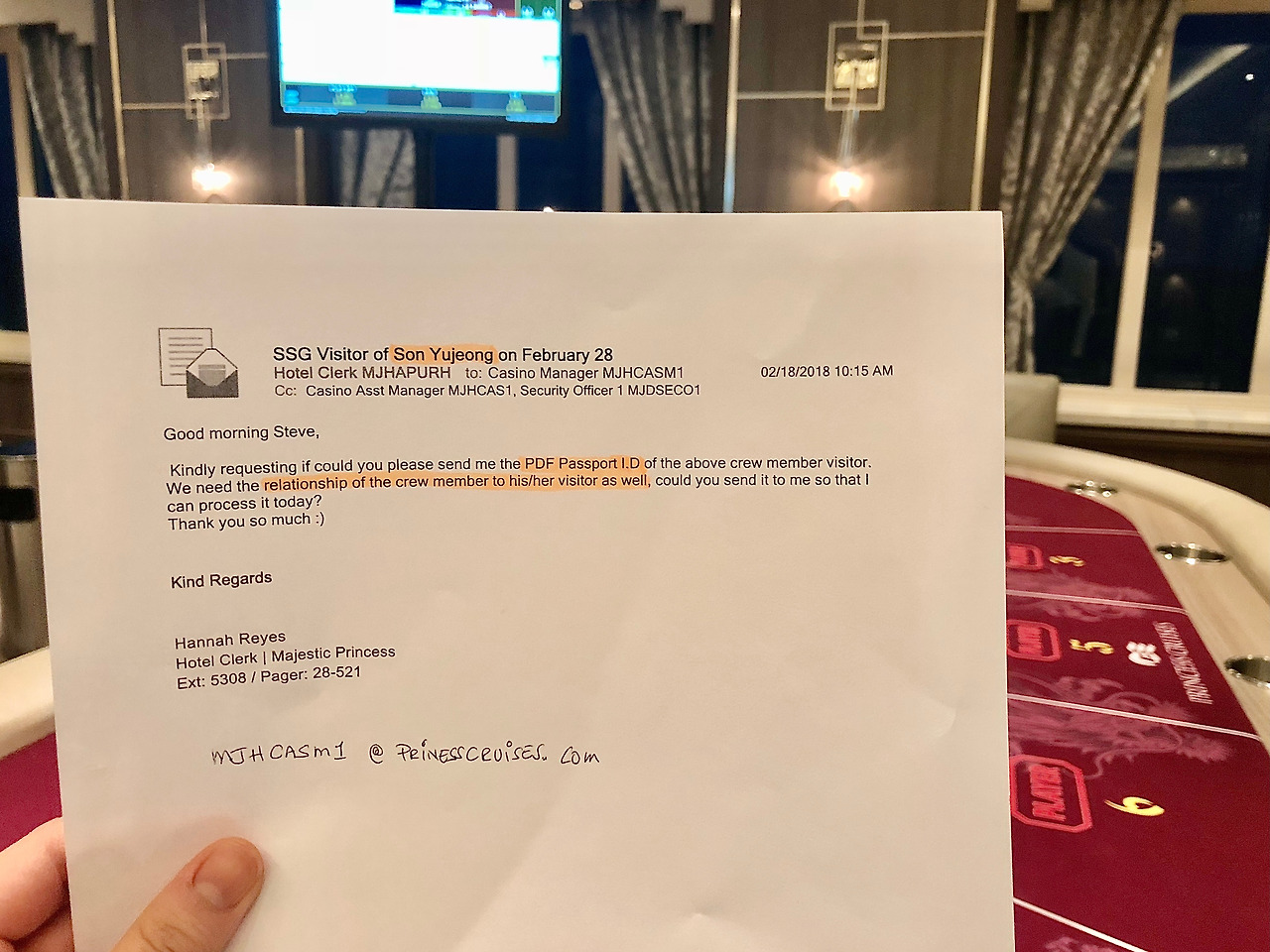 부산 입항을 열흘 앞두고 나는 카지노 매니저 스티브를 찾아갔다. 그것은 다름 아닌 가족과 친구를 크루즈로 초대하는 데에 있어 선사 측 동의를 얻기 위해서였다.