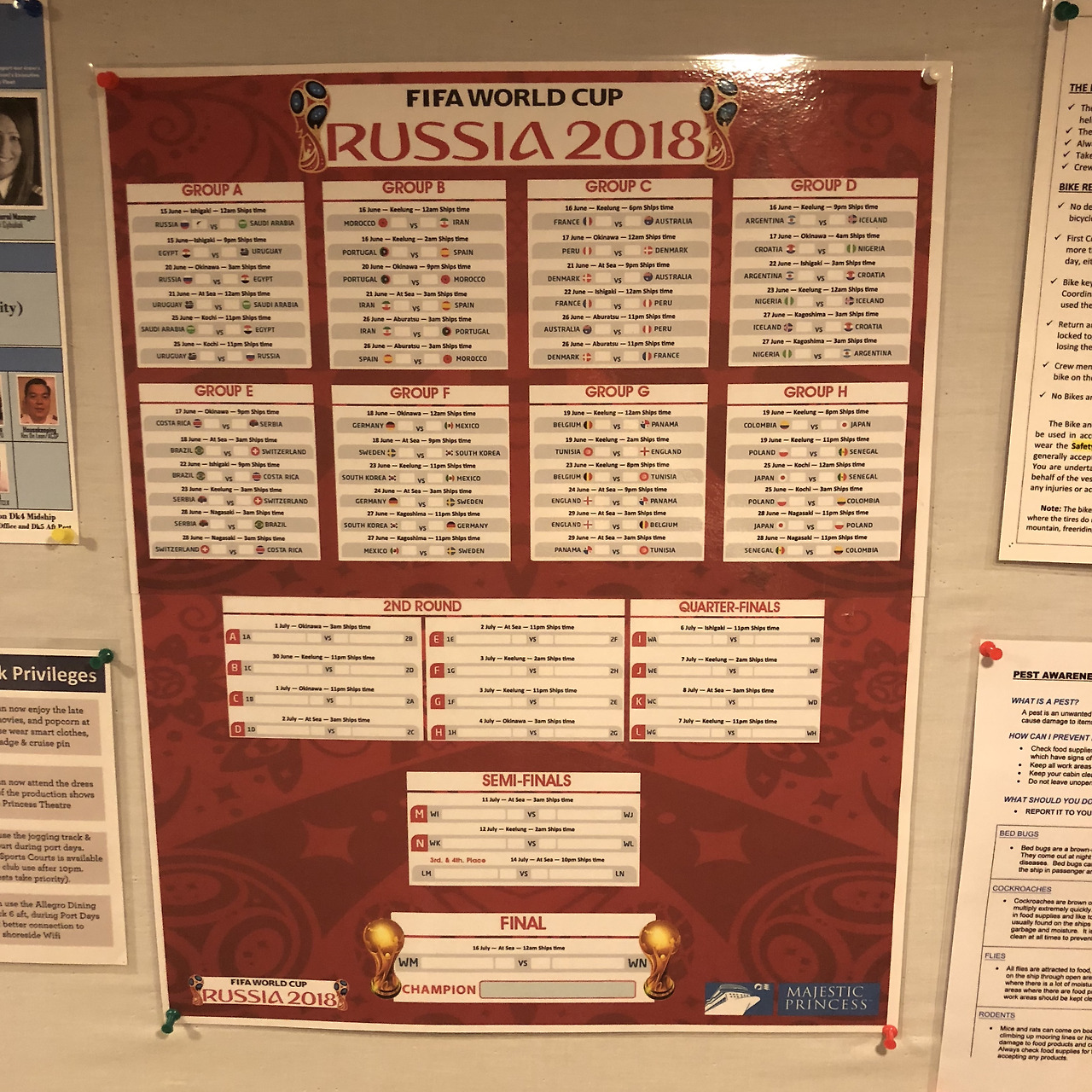 처음에는 그 영문을 몰라 평소처럼 그러려니 하고 넘겼다. 그러던 어느 날 근무가 끝난 후 크루바에 잠시 들린 나는 순간 깜짝 놀라 입을 틀어막았다. 그 이유는 다름 아닌 벽보의 월중 행사란에 다가 올 '2018년 러시아 월드컵'에 대한 안내문을 보았기 때문이다.