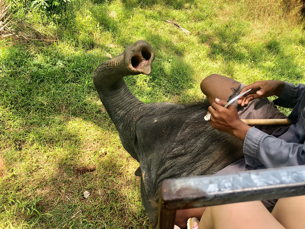 난생처음 타는 코끼리, 아니 난생처음 코끼리를 가까이에서 본 우리는 신기함에 입을 다물 수가 없었다. 한 가지 아쉬웠던 건 순서에 따라 아기코끼리에 올라타게 되어 거대하고 웅장하다는 느낌을 받을 수는 없었다는 것. 투어 내내 꿈틀거리고 씰룩 거리는 엉덩이의 반응에 즐거웠지만 행여 아기 코끼리가 우리 무게를 견디지 못할까 봐 노심초사했었다.