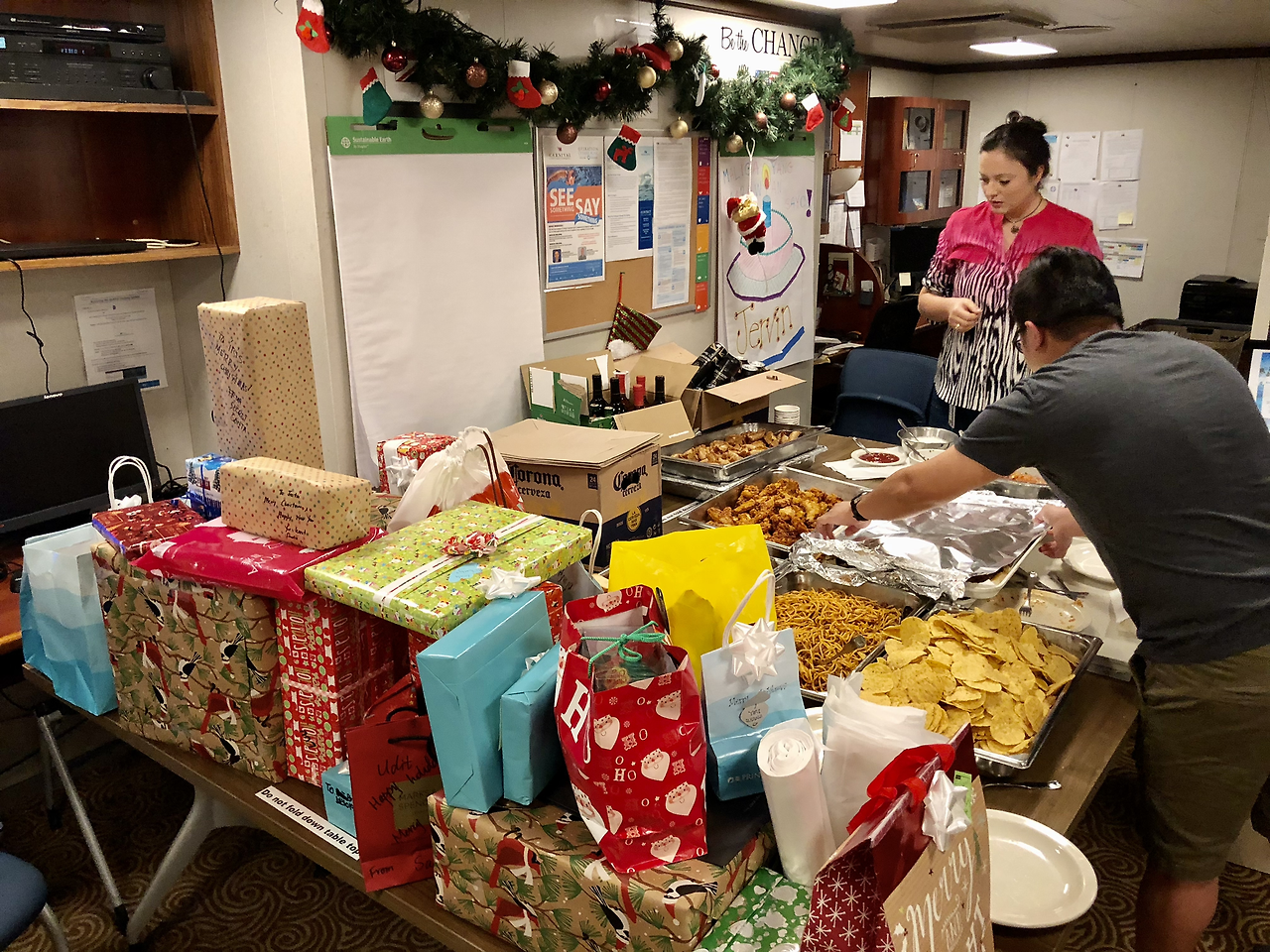 이맘때 크루즈 선내는 크리스마스 시즌으로 매우 분주하였다. 하지만 그만큼 곳곳에 배치된 화려한 장식들은 각종 볼거리를 선사했고, 모두들 성탄절을 의미 있게 보낼 준비에 한껏 들떠있는 듯했다. 각 부서의 매니저들은 팀원들에게 크리스마스 리스 제작 의사 여부를 조사했는데, 1등 한 부서는 소정의 혜택이 있었기 때문에 대부분 리스 만들기에 정성을 다했다.