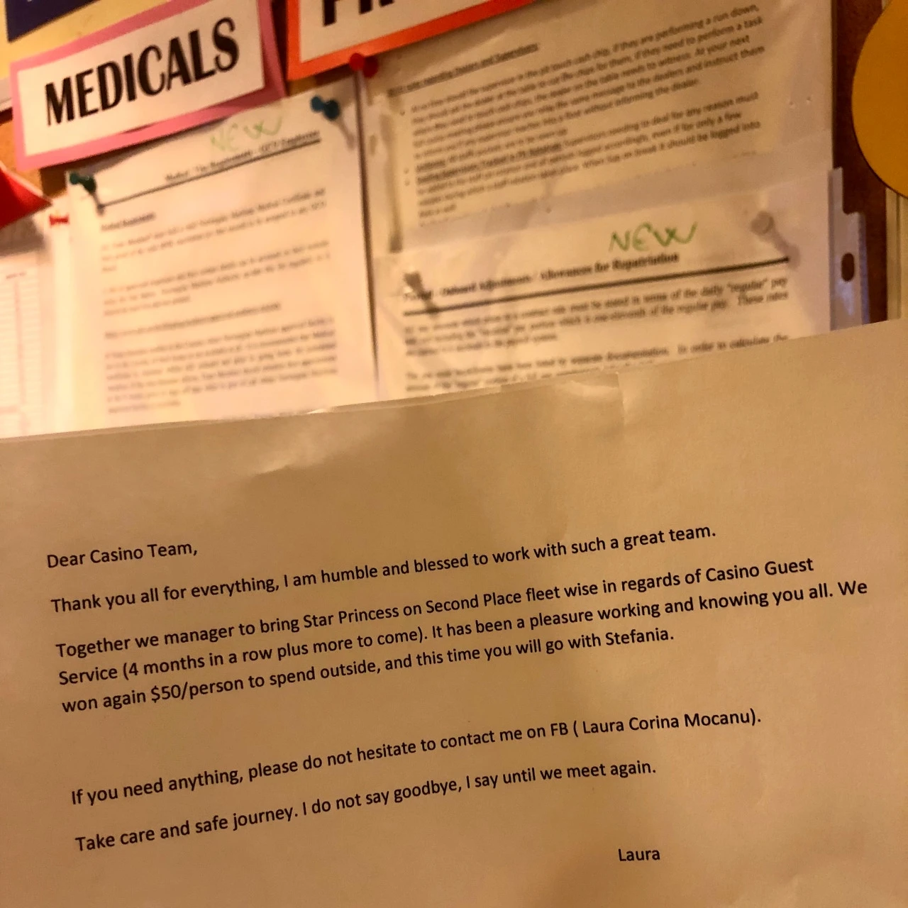 그래서 카지노 부서 크루즈 승무원은 현재 승선해 있는 해당 선박의 사번(=employee number)과 GCO의 사번, 두 개를 갖는 셈이다. 선박을 옮겨감에 따라 사번은 바뀔 수 있지만 GCO의 사번은 고용 계약이 된 이래로 퇴사하기 전까지 변하지 않는다.