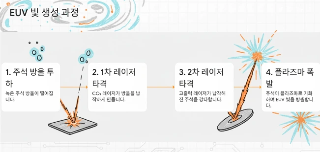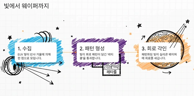 이 빛은 기존 DUV보다 10배 이상 짧아, 웨이퍼 위에 더 미세한 패턴을 새길 수 있다.