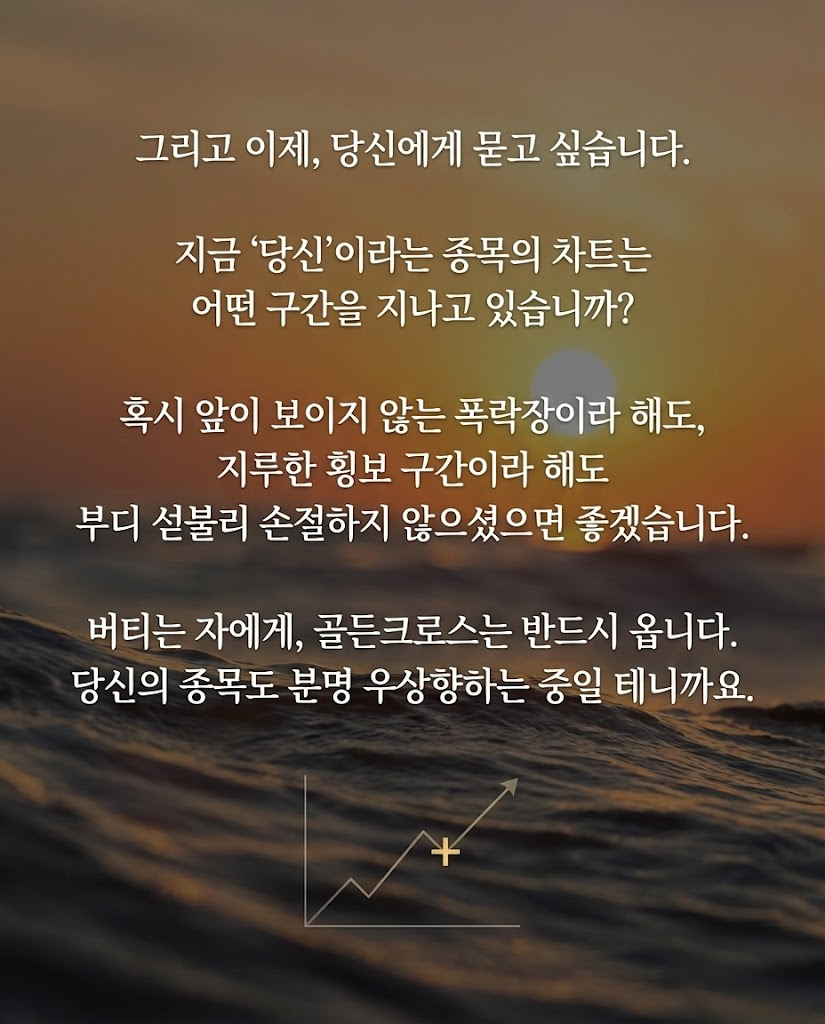 하루하루의 단기 변동성에 일희일비하지 않고, 묵묵히 버티는 종목이 결국 수익을 준다는 걸 알고 있다.