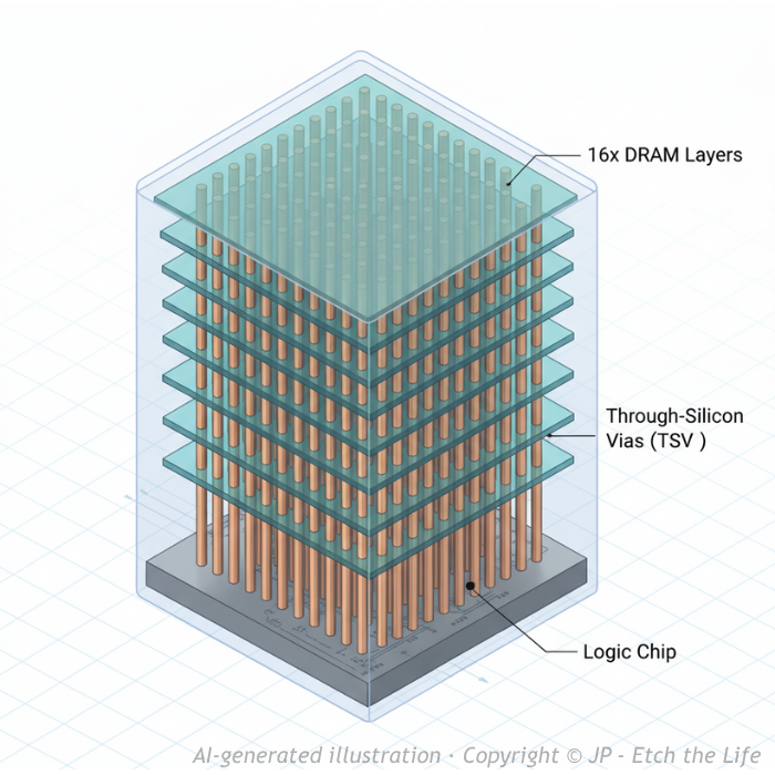 HBM은 여러 개의 메모리 칩을 한 층씩 쌓아서