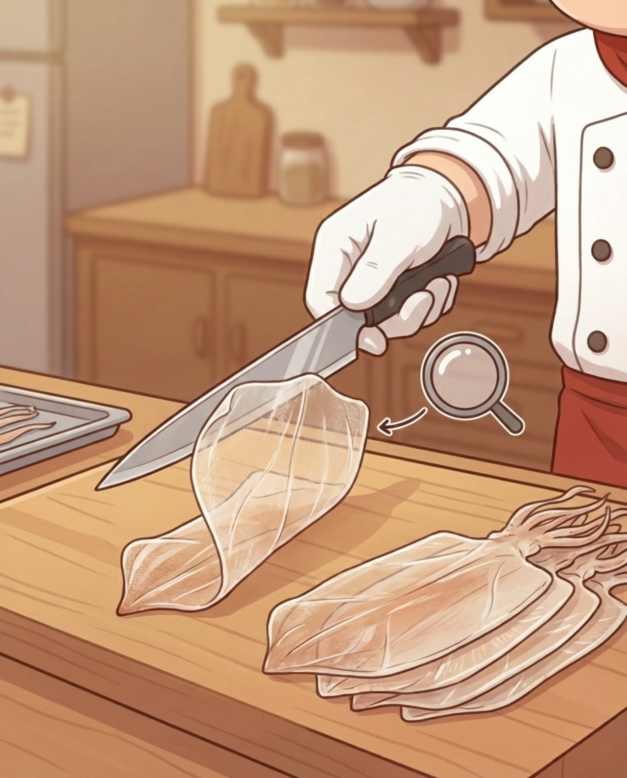 (오징어 포를 투명해질 때까지 뜨는 느낌… 딱 그거.)