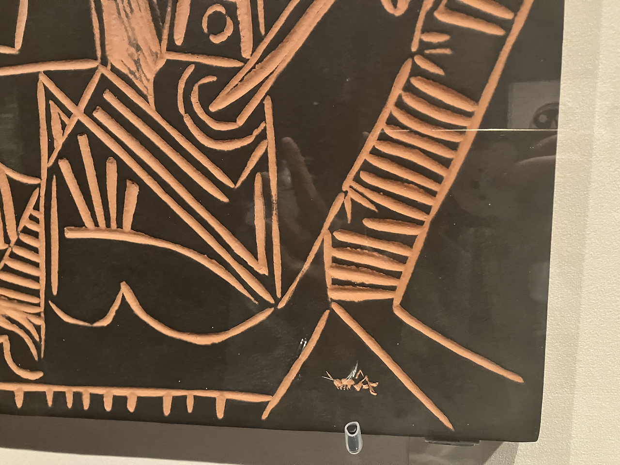 천재였던 피카소도, 존경하던 화가, 스승들의 작품들을 참고하며 자신만의 방식으로 재창조하곤 하였는데 이번 전시에서는 마네와 마티스의 작품을 모티브로 한 작품들이 전시되었다. 마네의 풀밭 위의 점심식사를 모티브로 큐비즘으로 표현한 회화 (레퍼런스) 그리고 이를 좌우의 구도만 바꿔 표현한 조형물이 전시되어 있었는데 우측 하단에 개미라던가 약간 뜬금없지만 그래서 더 재미있는 요소들이 군데군데 숨어있었다. 그동안 피카소 작품을 보면서 유머러스함은 크게 느끼지 못했는데.. 매력이 넘치는 화가였어!