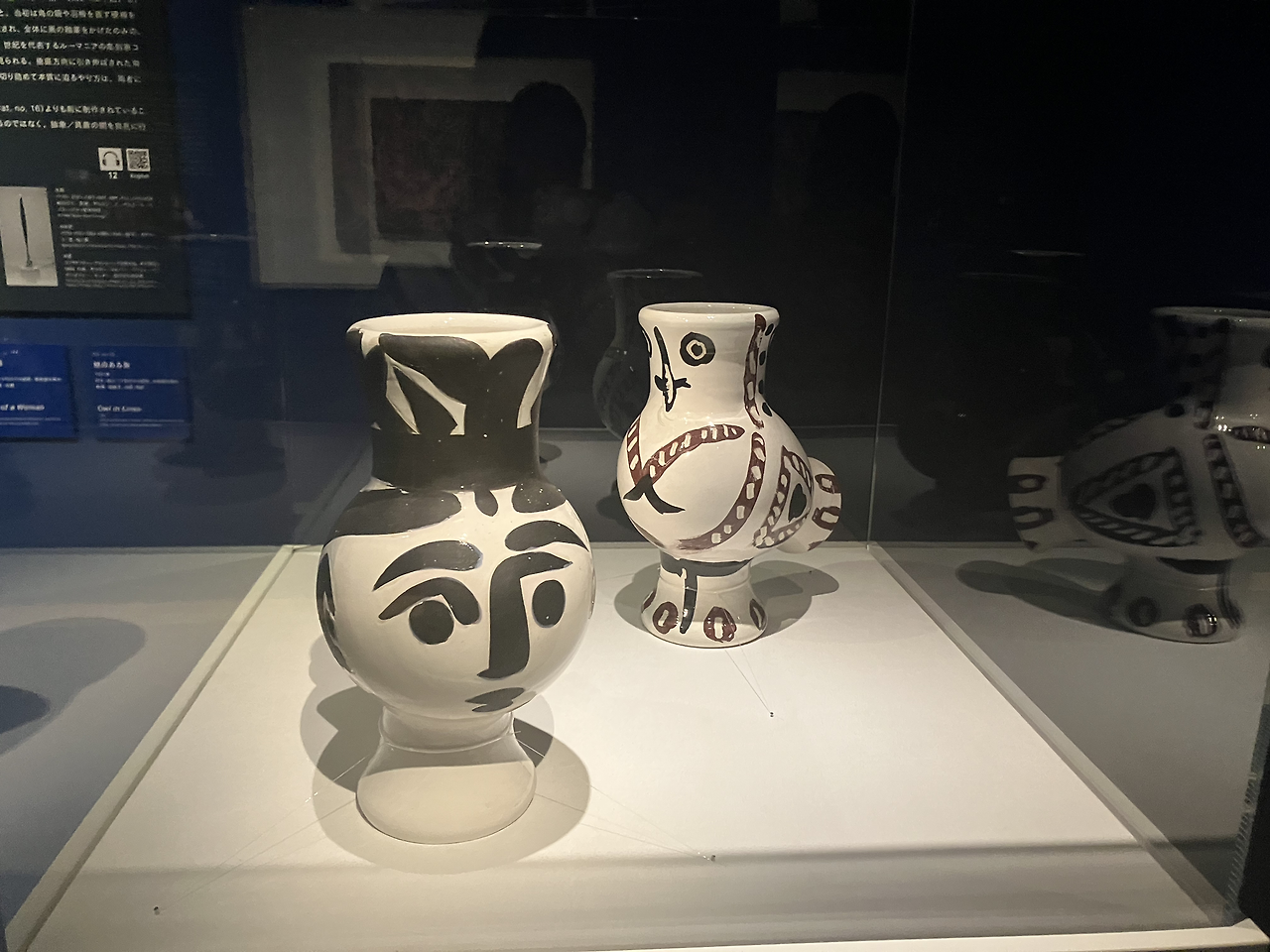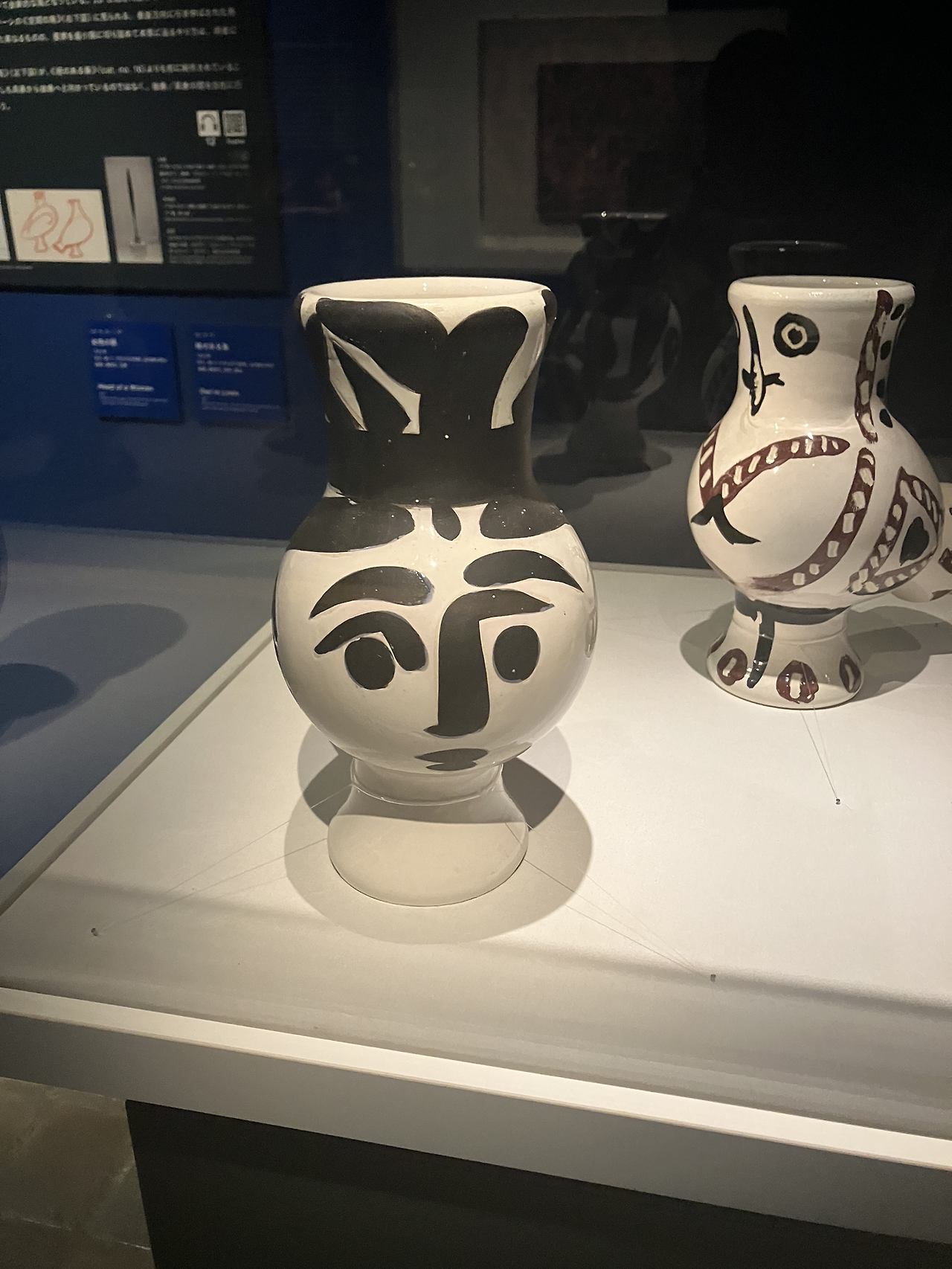 재미있던 부분 중 하나는 피카소 작품에 자주 등장하던 정어리 (イワシ、 이와시 생선) 가 그릇 위에 표현된 카모플라주 기법을 가미한 작품이었는데, 이 외에도 물병 안에 물병을 표현한 작품과 같이, 현실과 허상의 교묘한 경계선에서 피카소 특유의 익살스러움을 강조한 작품들이 인상 깊었다. 회화에서 느껴지는 신비롭고 때로는 그로테스키한 느낌보다는 재치있으면서 피식하고 웃음이 나오는 그런 작품들이 주를 이뤘다