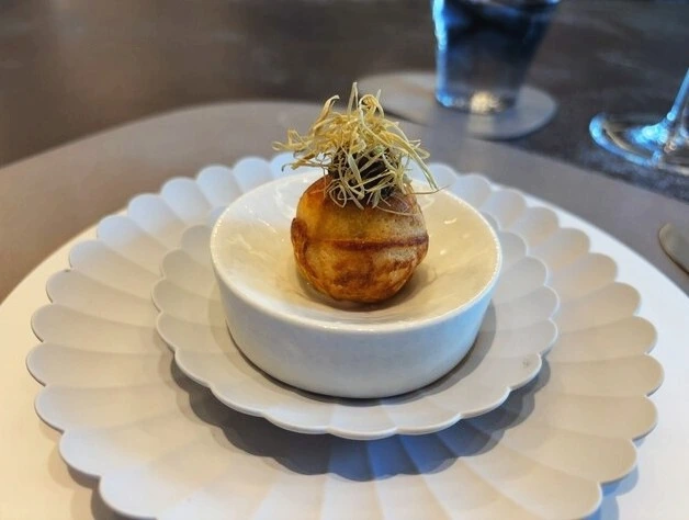 - 가게의 기본적인 형태는 프렌치 레스토랑의 성격을 가지고 있지만 메인 셰프인 '카토 쥰이치' 가 프랑스 이외의 덴마크에서도 수행을 해 덴마크식 조리법이 들어가는 것이 특징이었습니다. 제철재료를 사용해 코스를 구성하고 있어 코스의 가격대와 시기별로 요리는 조금씩 다르지만 가게의 시그니처 메뉴는 '발효 양송이스프' 로 일본과 덴마크의 대표적인 특징인 '발효' 를 이용한 메뉴입니다. 이 '발효 양송이스프' 는 가장 안에 불향을 넣은 '달걀' 이 있고 그 위에 기름에 구워 '소테' 형식으로 완성한 '양송이 소테' 에 그 위에는 얇게 썰어낸 생양송이를 올린 뒤 마지막으로 오랜 시간 발효시킨 뒤 이를 끓여 육수로 만든 '양송이 육수' 를 더해 완성하고 있습니다. 사용하는 재료의 대부분이 양송이를 사용하고 있어 메뉴의 이름 그대로 직관적인 느낌을 즐기기에 좋았는데 이 메뉴는 가게를 개업하기 직전 일했던 "서브림" 에서 수행을 할 당시 개발한 메뉴로 큰 인기를 얻어 자신의 레스토랑을 개업한 현재에도 시그니처 메뉴로 다루고 있습니다. 이 '발효 양송이스프' 에 사용하는 달걀의 경우 처음 음식을 개발했을 때는 '온천달걀' 을 사용하였지만 같이 들어가는 다른 양송이와의 조화가 맞지 않아 현재의 형태로 바꿨습니다.